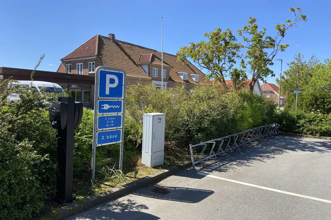 Es gibt 2 Ladestationen für Elektroautos auf der anderen Straßenseite – etwa 20 Meter vom Haus entfernt.