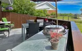 Dieses gemütliche Haus ist wie geschaffen für eine erholsame Auszeit vom Alltag. Durch große Fenster fällt viel warmes Tageslicht auf eine charmante Einrichtung mit bequemen Sofa, Schaukelstuhl und liebevoll ausgesuchten Details. Kommen Sie hier zur Ruhe bei einer duftenden Tasse Kaffee, stöbern Sie in der kleinen Bibliothek oder verbringen Sie einen gemütlichen Abend vor dem Fernseher.