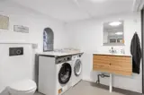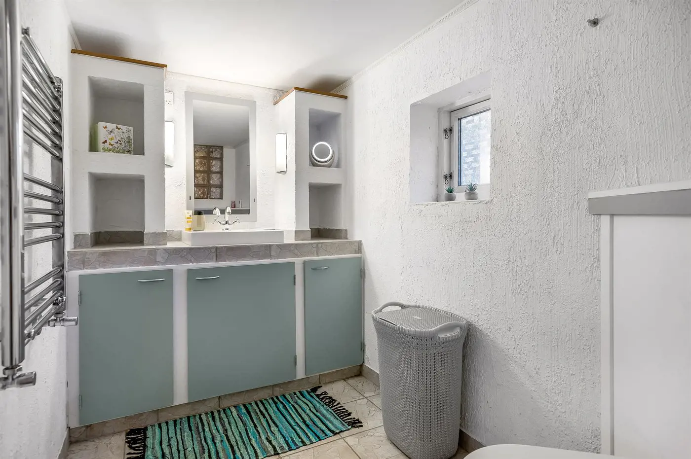 Es gibt 1 Badezimmer mit Duschnische und 2 Toiletten, davon 1 Gästetoilette. Fußbodenheizung in 1 Badezimmer. Fußbodenheizung in der Gästetoilette.