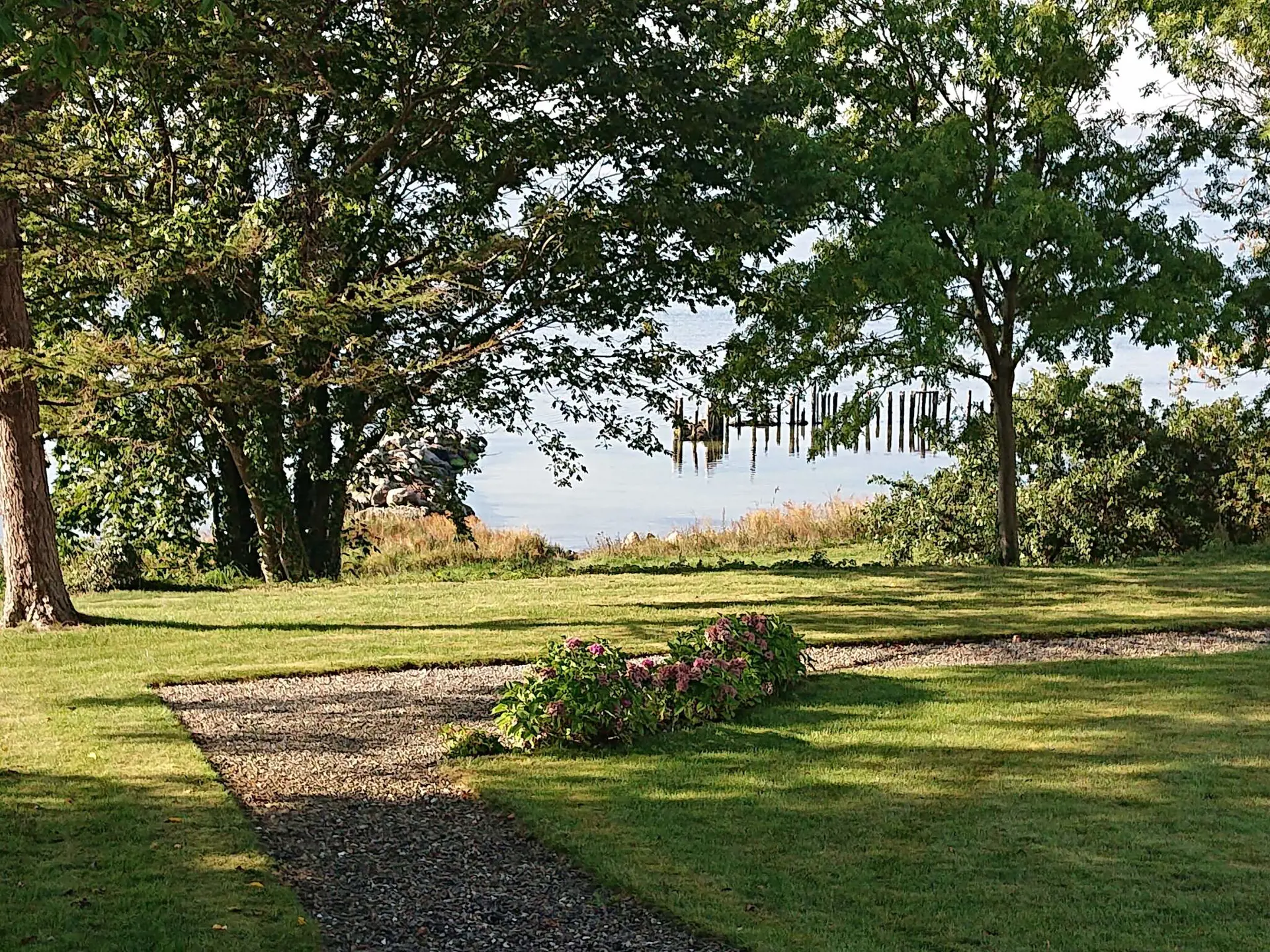 Vom Wohnzimmer aus haben Sie Zugang zur überdachten Terrasse, wo Sie die fantastische Aussicht zum Wasser im Storstrømmen und zur alten Brücke über der Meeresenge erleben können.