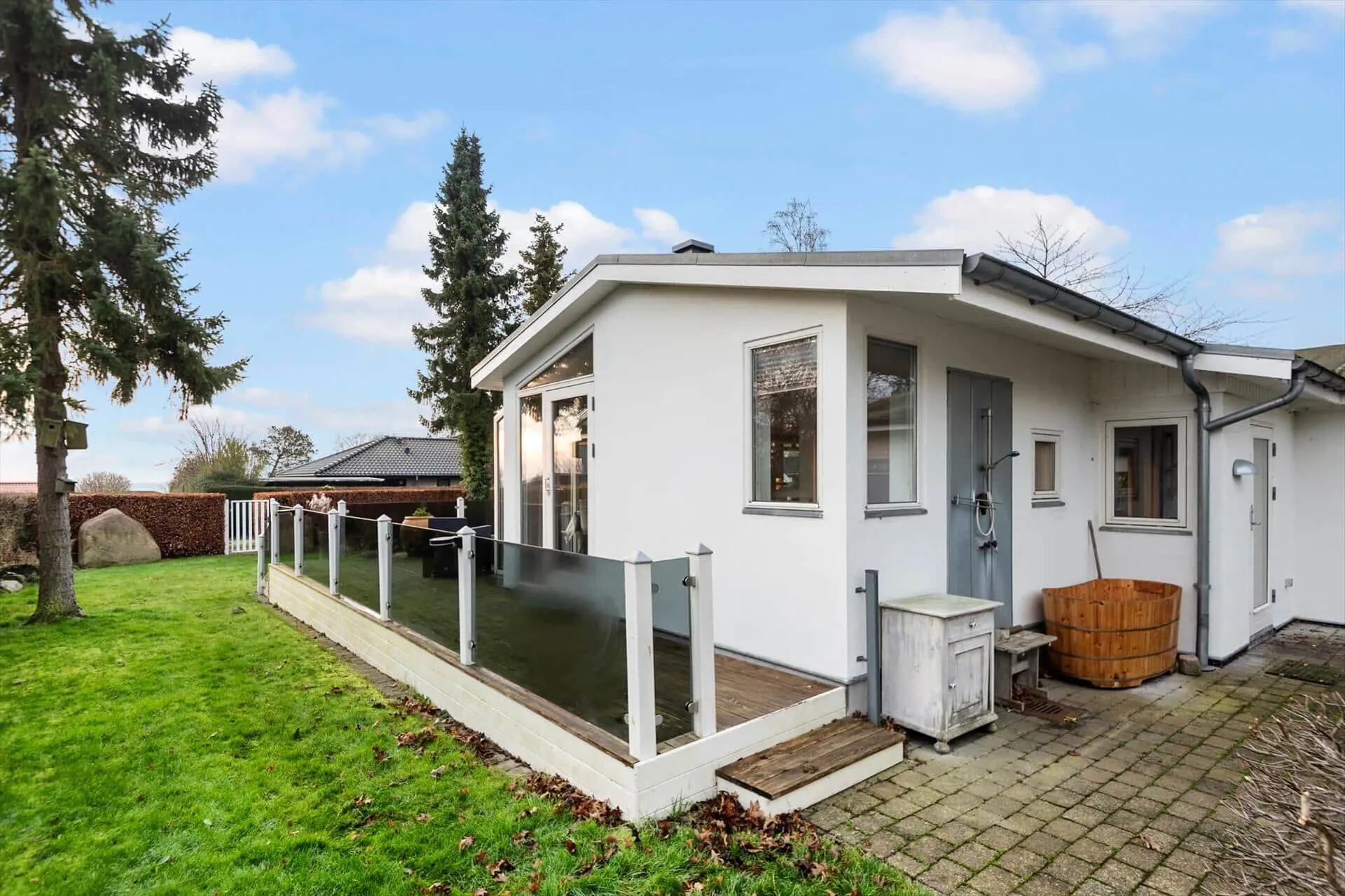 Im schönen, umzäunten Garten können Sie die warmen Tage und Abende genießen. Die große, teilweise überdachte Terrasse lädt zum Verweilen ein, wenn der Tau fällt. Gibt es etwas Schöneres, als die Dunkelheit und die Ruhe bei einem Glas Wein, einer Tasse Tee oder Kaffee zu genießen? Ein gemütliches Nebengebäude mit zwei Einzelbetten steht Ihnen ebenfalls zur Verfügung. Im Garten finden Sie außerdem eine Außendusche und eine Badewanne aus Holz für eine Person. Hier finden Sie Raum für Gemütlichkeit, Entspannung und Naturerlebnisse. Der schöne Strand und die wunderschöne Natur mit ihren Wäldern sind in unmittelbarer Nähe.