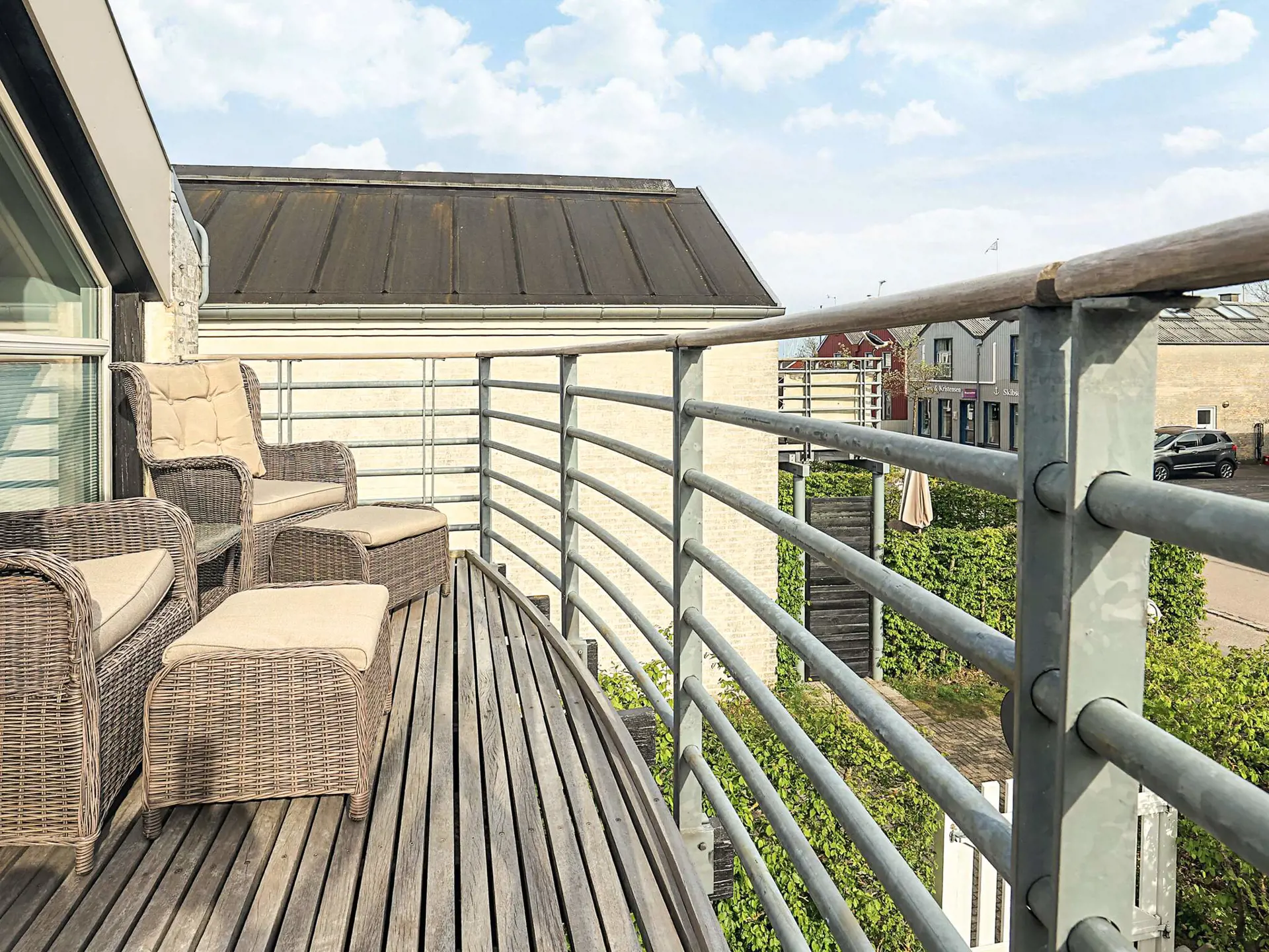 Maritimer als hier kann eine Lage kaum sein! Man genießt direkten Ausblick zum Yachthafen. Besonders einladend ist der nach Süden ausgerichtete Innenhof und der Balkon, von dem aus sich die Aussicht wunderbar bewundern lässt. Ein weiterer privater Außenbereich befindet sich auf der gegenüberliegenden Seite des Hauses, wo Sie die Natur optimal genießen können.