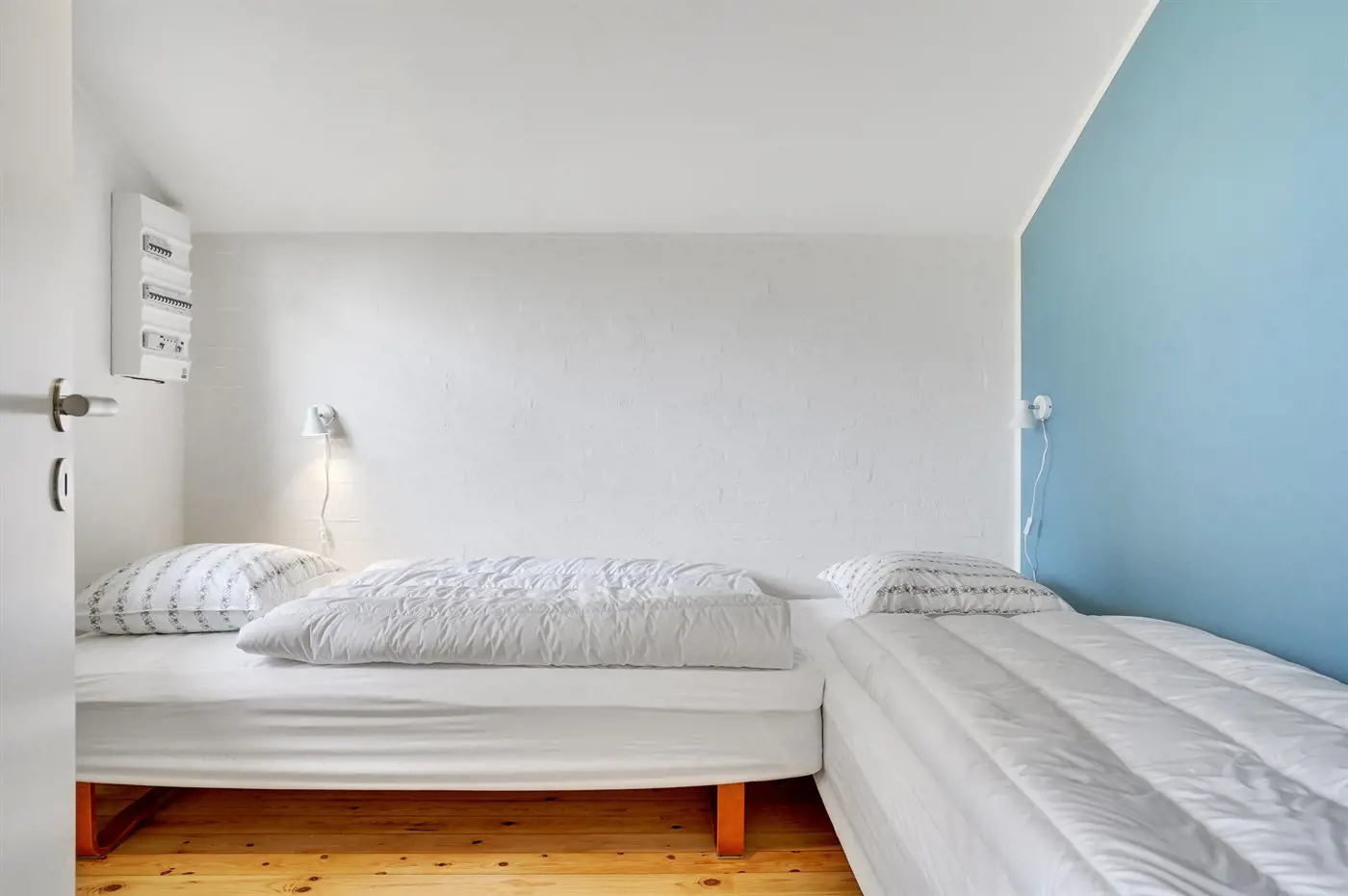 Die Schlafplätze verteilen sich auf 2 Schlafräume. 2 Schlafplätze in einem Doppelbett. 2 Schlafplätze in Einzelbetten. 2 Schlafplätze auf einer Doppelschlafcouch.