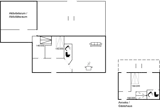 Neben dem Ferienhaus liegt das Gästehaus, das mit Wohnzimmer mit Schlafcouch und Doppelbett, Badezimmer sowie einer kleinen Theküche mit u. a. Kühl-/Gefrierschrank eingerichtet ist. Zum Gästehaus gehört ebenfalls eine gemütliche Terrasse.