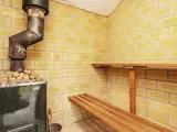 Die helle, gut ausgestattete Wohnküche findet man in direktem Anschluss an das den Wohnbereich mit großem Fenster und Holzofen, sodass Sie die wunderbare Aussicht in herrlich warmer Umgebung genießen können. Das Ferienhaus verfügt zudem über zwei gute Schlafzimmer und ein großes Badezimmer mit Dusche und Fußbodenheizung. Der separate Annex nebenan auf dem Grundstück bietet zusätzlich Platz für zwei Personen. Dort befindet sich auch die finnische Sauna. Vom Wohnzimmer aus hat man Zugang zu einer 50 m2 offenen, südwestlich ausgerichteten Terrasse, auf der man in guten Gartenmöbeln alle Sonnenstunden mit schöner Aussicht genießen kann.