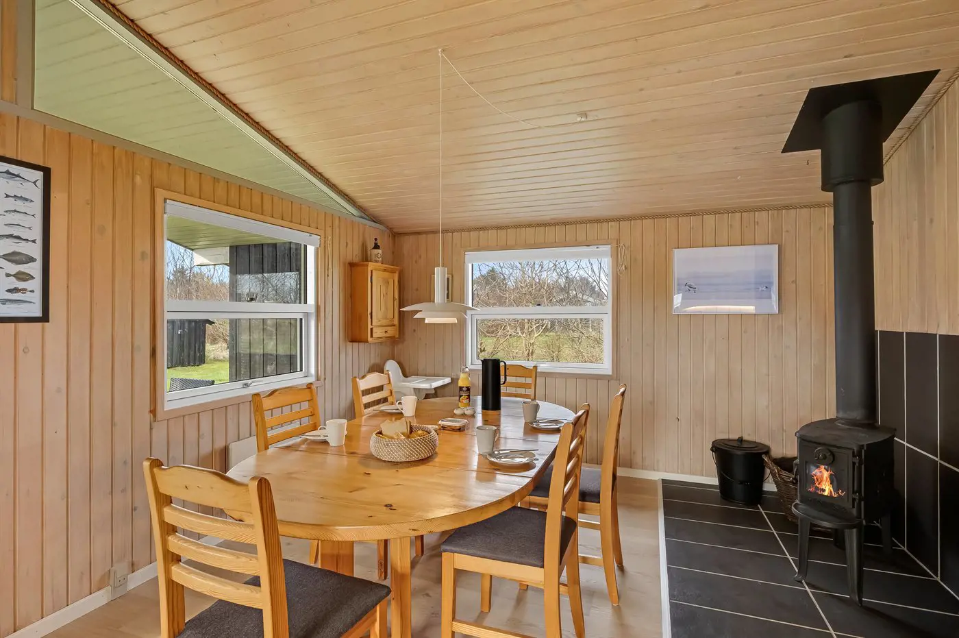 Das Ferienhaus eignet sich für 6 Personen sowie 1 Kleinkind bis zu 3 Jahren. Die Ferienunterkunft hat eine Wohnfläche von 99 m² und wurde 1984 gebaut. 2018 wurde die Ferienunterkunft renoviert. Es ist erlaubt 2 Haustiere mitzubringen. Die Ferienunterkunft ist mit energiefreundlicher Luft-Luft- Wärmepumpe ausgestattet. Die Ferienunterkunft ist mit Waschmaschine ausgestattet. Tiefkühlmöglichkeit mit 50 Liter Nutzinhalt. Es gibt außerdem einen Kaminofen. Für die jüngsten Feriengäste ist 1 Kinderhochstuhl vorhanden.