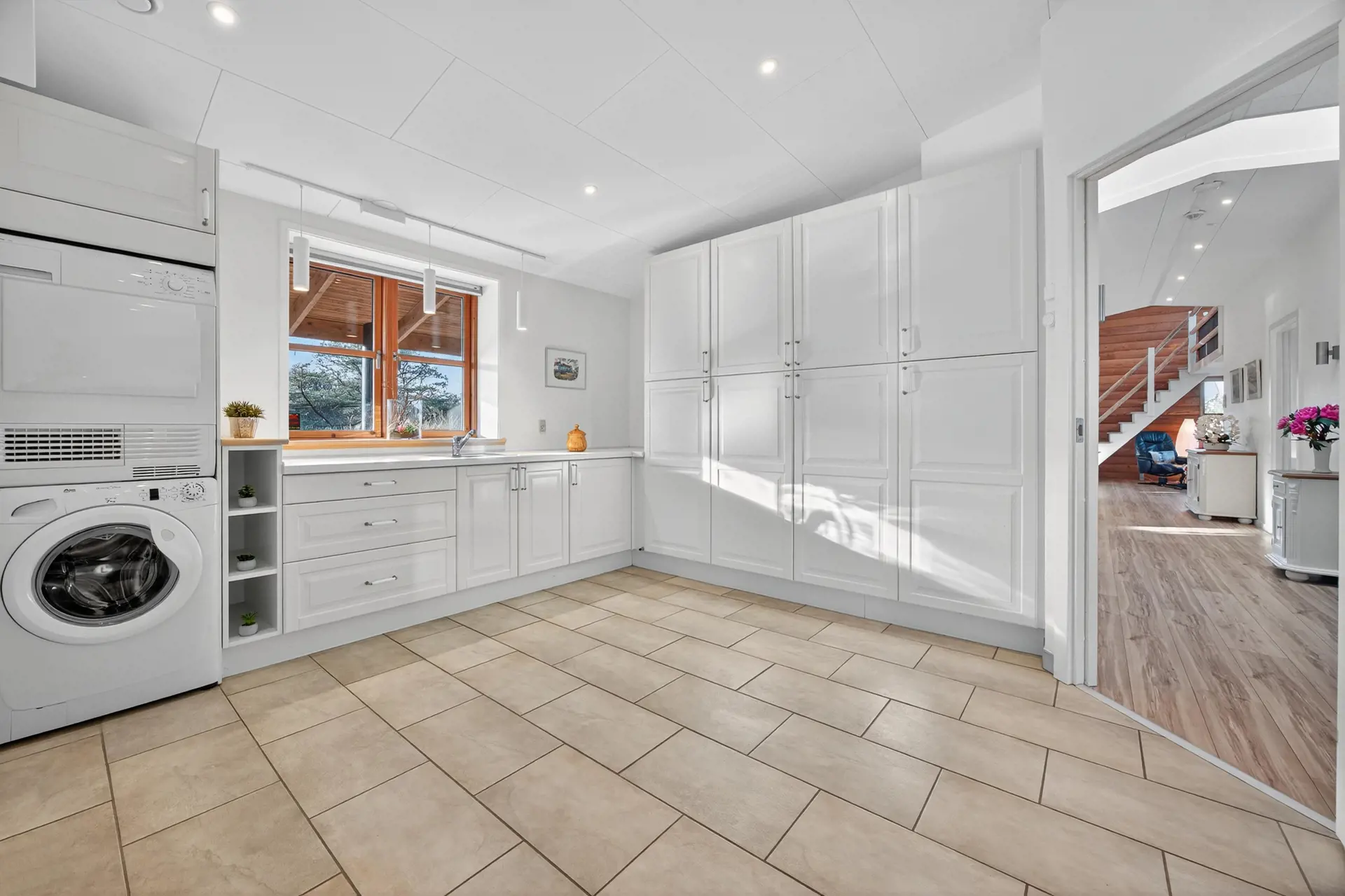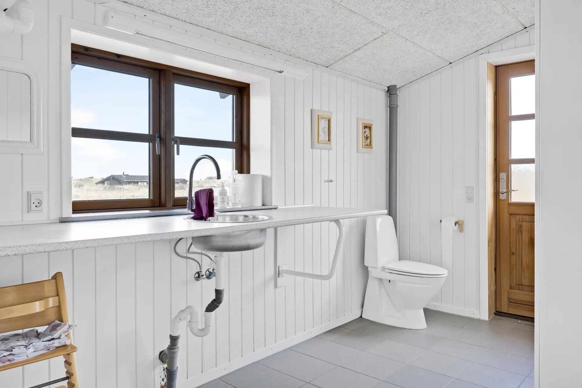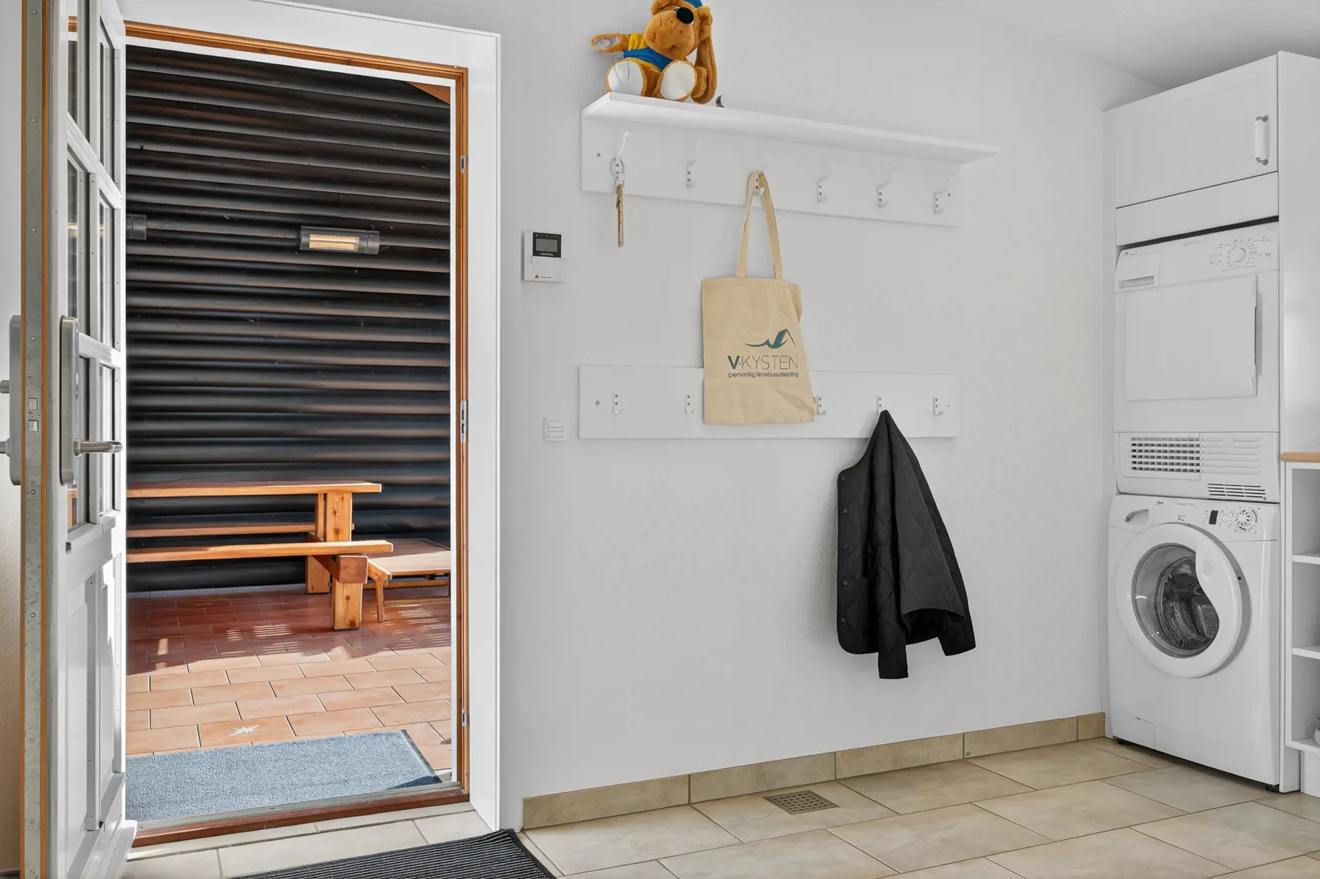 Beim Betreten dieses einladenden Ferienhauses am Kjul Strand erwartet Sie ein großer und praktischer Hauswirtschaftsraum mit Waschmöglichkeiten sowie reichlich Stauraum für Oberbekleidung und Strandausrüstung. Von hier aus gelangen Sie in das frisch renovierte Badezimmer, das mit Doppelwaschbecken, elektrischem WC und moderner Technik ausgestattet ist und Ihnen vom ersten Urlaubstag an höchsten Komfort bietet.