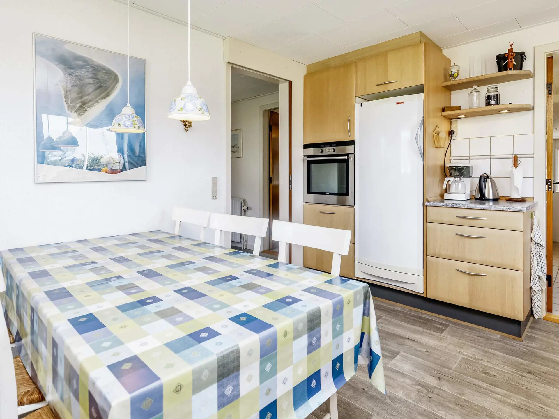 Die Unterkunft besteht aus Eingangdiele, Küche, geräumiges Wohn- und Esszimmer, drei Schlafzimmer und Badezimmer mit Fußbodenheizung. Zur Ausstattung gehören Waschmaschine, Geschirrspüler und ein geräumiger Gefrierschrank mit 200 l Kapazität. Es besteht die Möglichkeit des Streamens eigener TV-Anbieter über Chromecast.