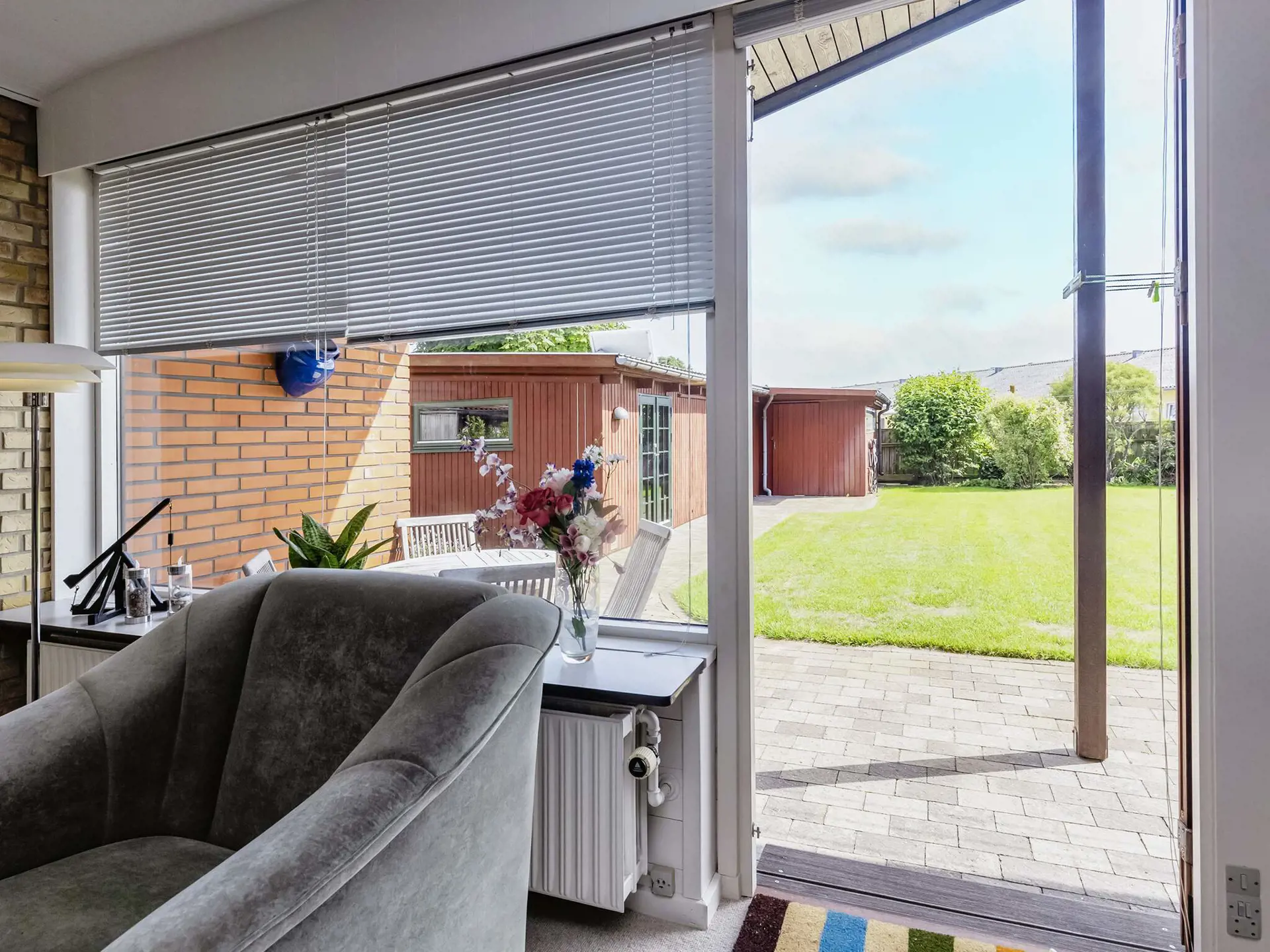 Der Außenbereich bietet einen kleinen Garten und eine schöne, nach Süden ausgerichtete Terrasse, auf der Sie nachmittags eine kühle Erfrischung genießen können. Hier bietet sich eine gute Gelegenheit, mit der Familie ein paar gemütliche Stunden zu verbringen und den Gartengrill anzuzünden, der den Gästen des Hauses zur Verfügung steht. Sowohl offene als auch überdachte Terrassenfläche vorhanden.