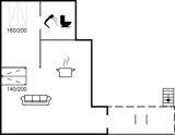 Es gibt einen Schlafraum. 2 Schlafplätze in einem Doppelbett. 2 Schlafplätze auf einer Doppelschlafcouch. 2 von diesen Schlafplätzen befinden sich im Wohnzimmer.