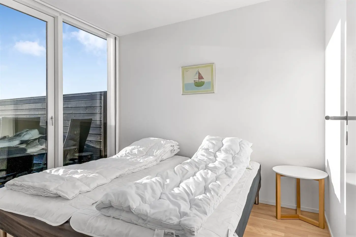 Die Schlafplätze verteilen sich auf 4 Schlafräume. 4 Schlafplätze in Doppelbetten. 4 Schlafplätze in Einzelbetten. Ferner steht ein Kinderbett zur Verfügung.