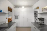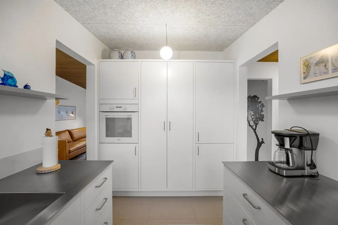 Die Küche ist mit Kühlschrank ausgestattet. Außerdem gibt es 4 Induktions-Kochzonen, Umluftofen sowie Geschirrspüler.