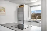 Die Küche ist mit Kühlschrank ausgestattet. Außerdem gibt es 4 Induktions-Kochzonen, Umluftofen, Mikrowelle sowie Geschirrspüler.