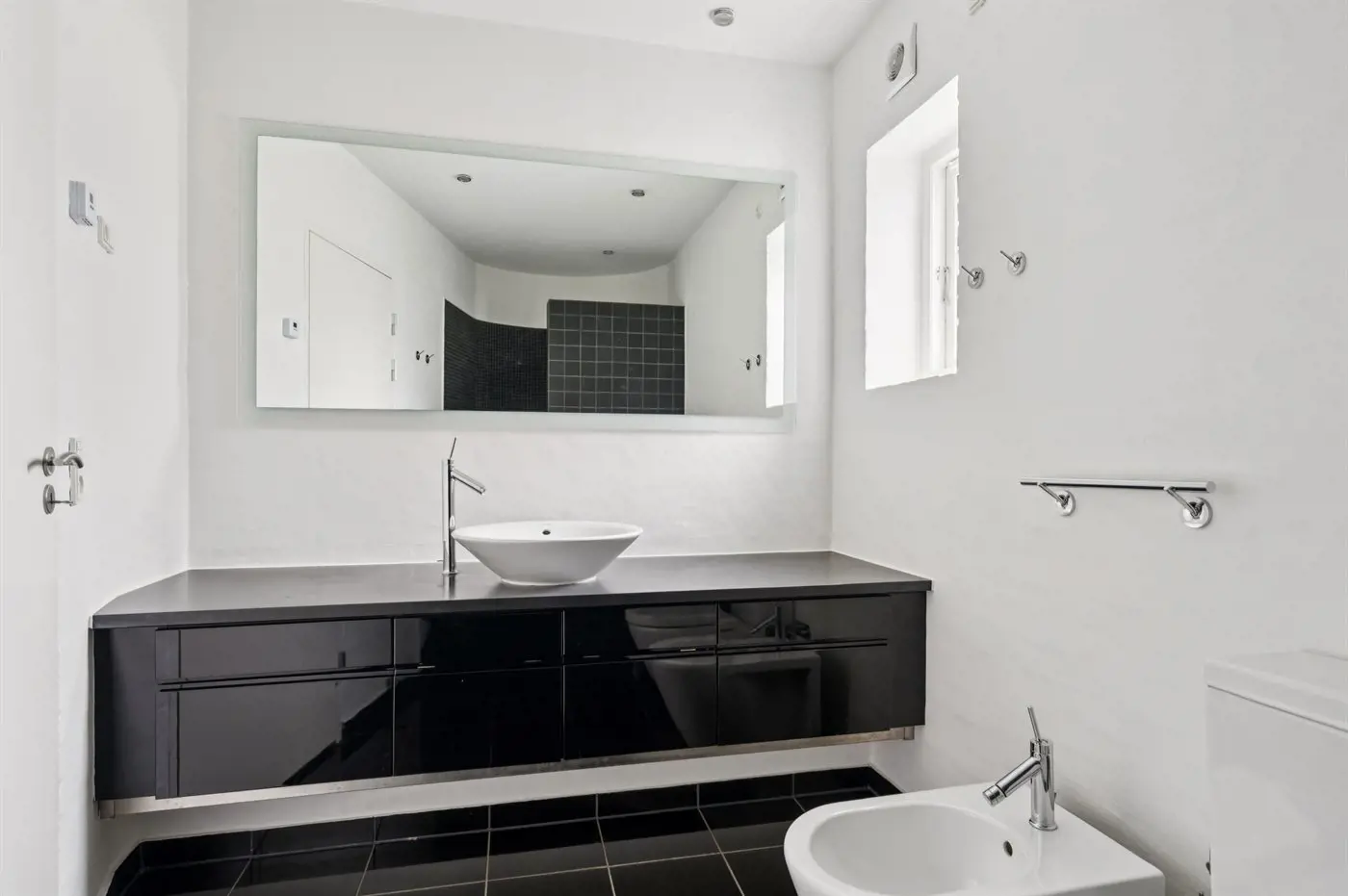 Es gibt 1 Badezimmer mit Duschnische und 2 Toiletten, davon 1 Gästetoilette. Fußbodenheizung in 1 Badezimmer.