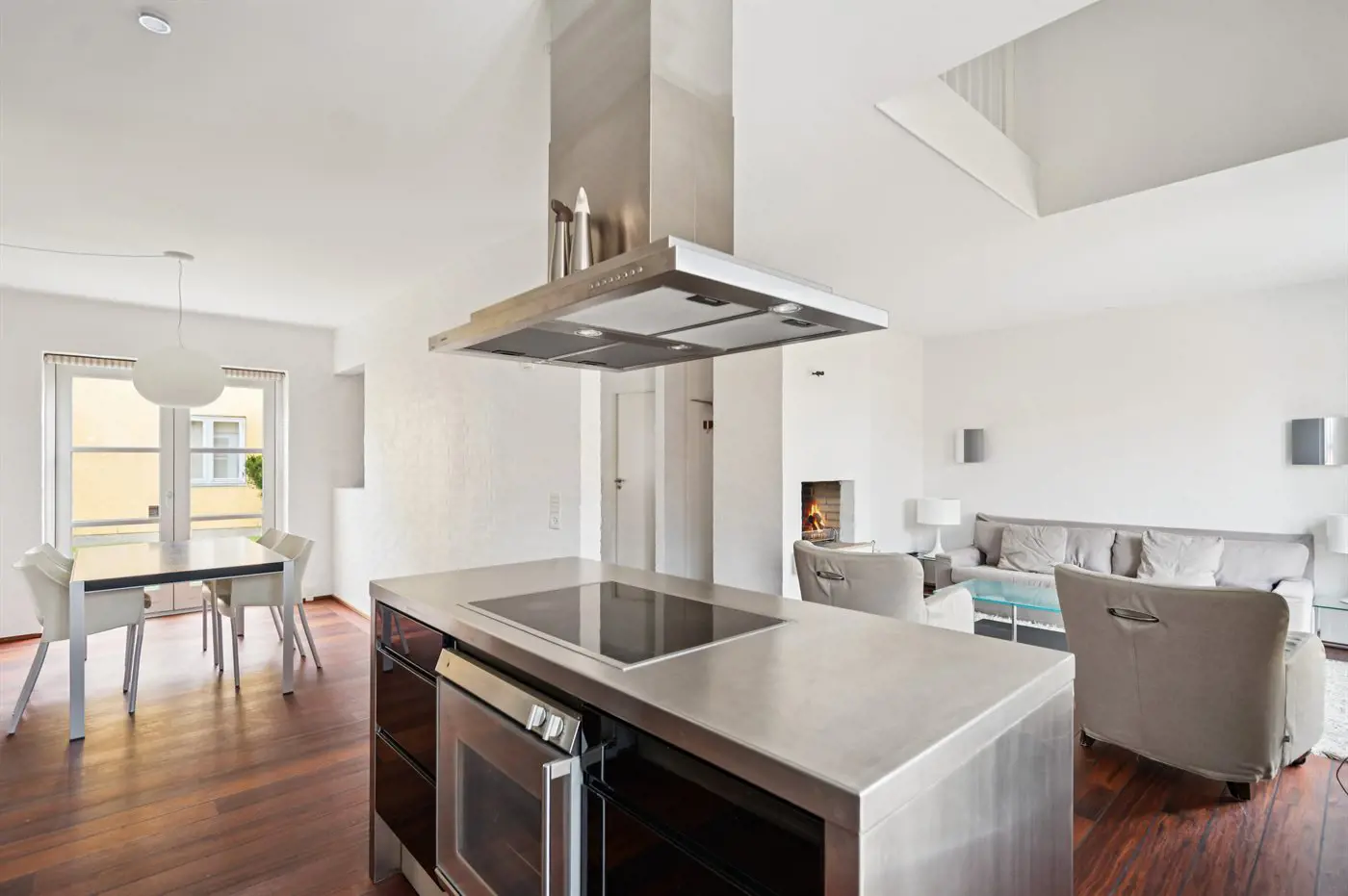 Die Küche ist mit Kühlschrank ausgestattet. Außerdem gibt es 4 Induktions-Kochzonen, Umluftofen sowie Geschirrspüler.