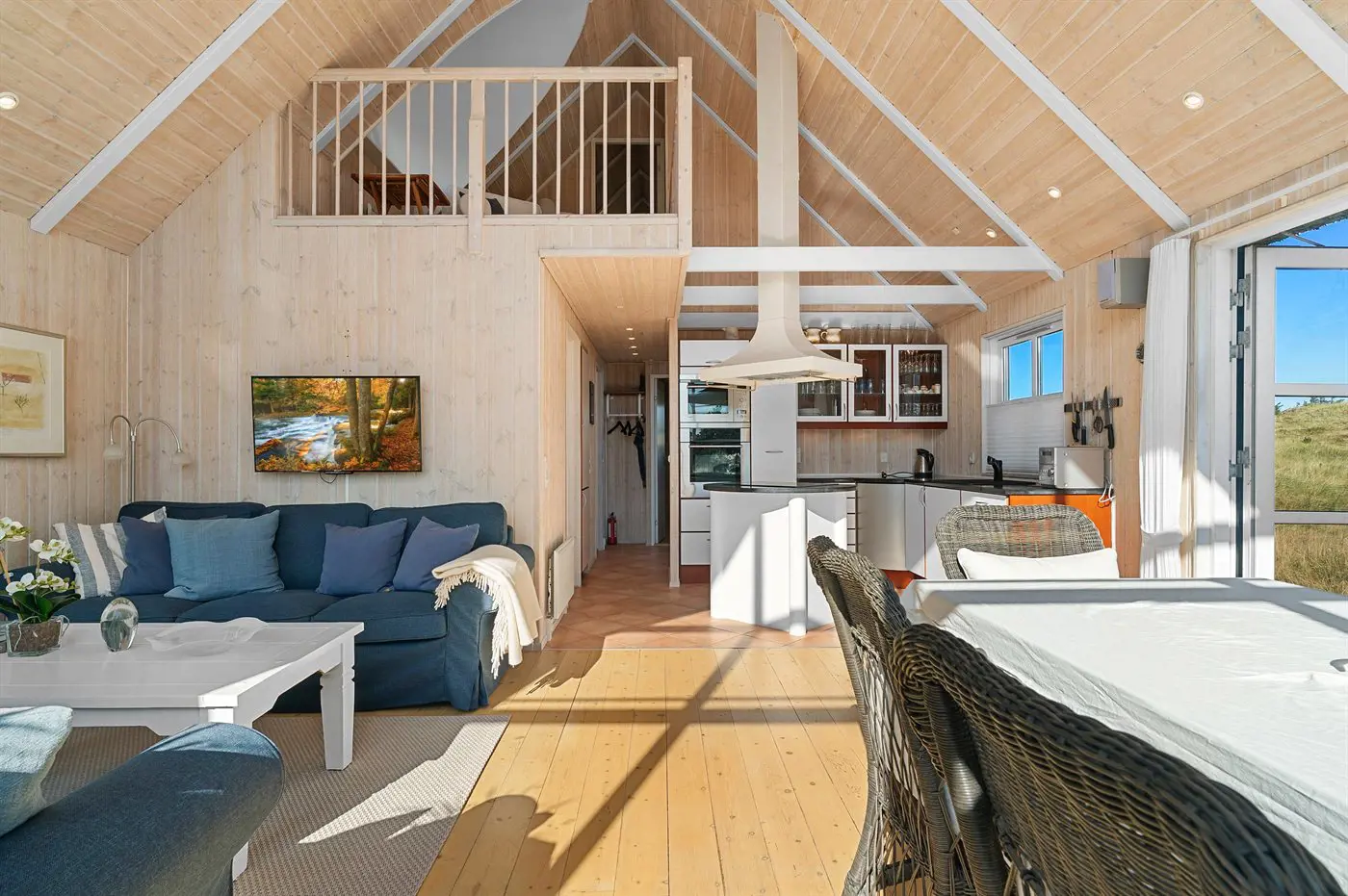 1 Smart-TV. Mindestens 4 dänische Fernsehsender. 1-3 schwedische Fernsehsender. 1-3 norwegische Fernsehsender. Mindestens 4 deutsche Fernsehsender. Es steht kabellose Internetverbindung zur Verfügung.