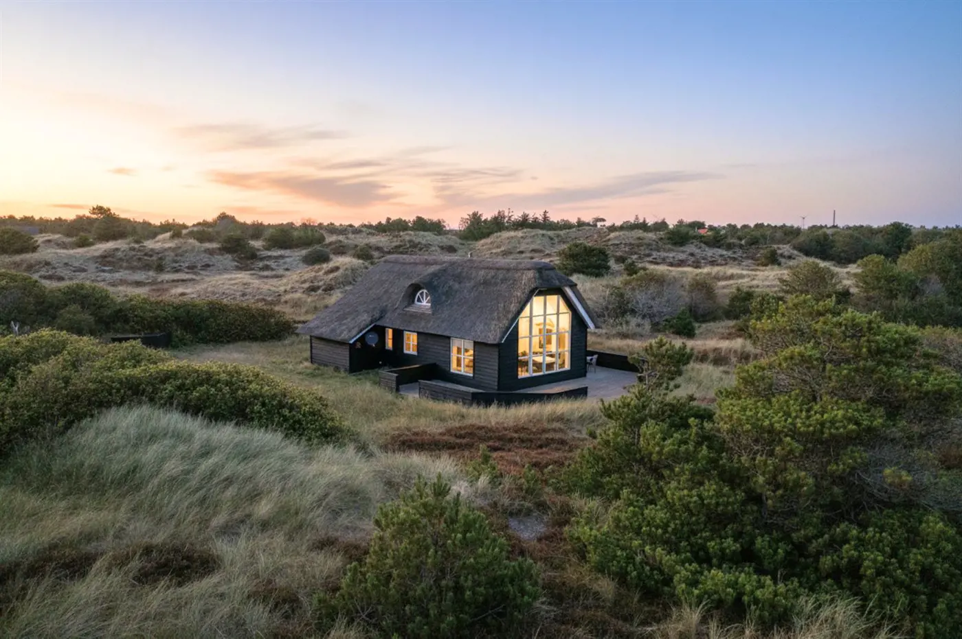 Ein wirklich schönes Ferienhaus mit einer fantastischen Lage im Feriengebiet Gl. Skagen, nahe am Sonnenuntergangsplatz und dem herrlichen Badestrand. Hier wohnst du mitten in der gemütlichen Umgebung mit den ikonischen Badehotels und der schönen Natur ganz in der Nähe. Das Zentrum von Skagen und der Hafen sind mit dem Fahrrad bequem erreichbar.