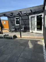 Das Nebengebäude wurde 2020 erbaut und bietet 35 m² mit einer praktischen Einrichtung, die eine kombinierte Küche/Wohnbereich, ein gemütliches Schlafzimmer und ein modernes Badezimmer mit Fußbodenheizung umfasst. Die Küchenzeile ist praktisch ausgestattet mit einem Tischofen, Kühlschrank, Toaster, Wasserkocher und Kaffeemaschine, sodass Sie leicht einfache Mahlzeiten zubereiten können. Das Schlafzimmer verfügt über ein komfortables Doppelbett, das Platz für zwei Personen bietet. Das Badezimmer ist mit einer Dusche, Toilette und angenehmer Fußbodenheizung ausgestattet, die an kühlen Morgen für zusätzlichen Komfort sorgt.