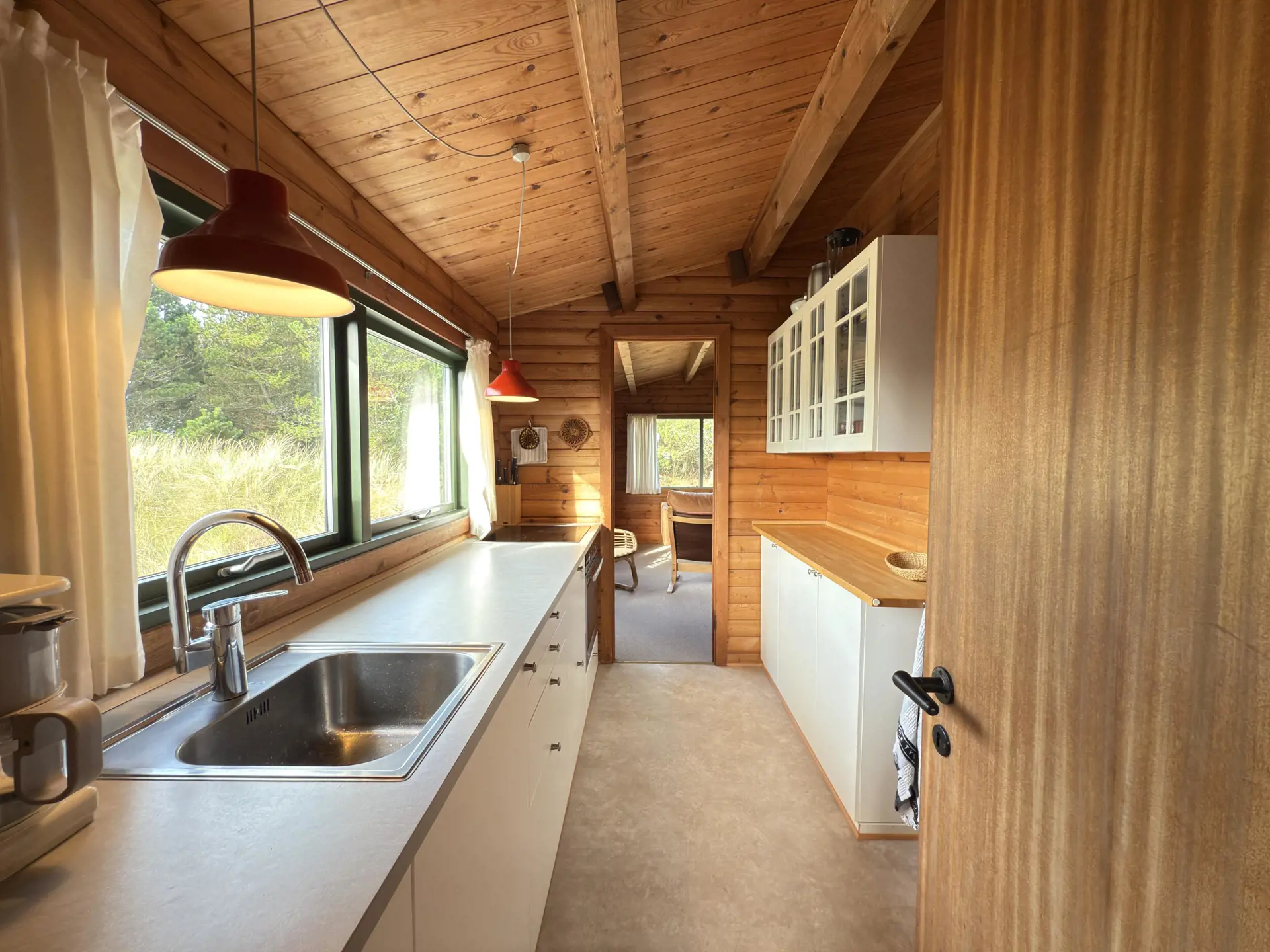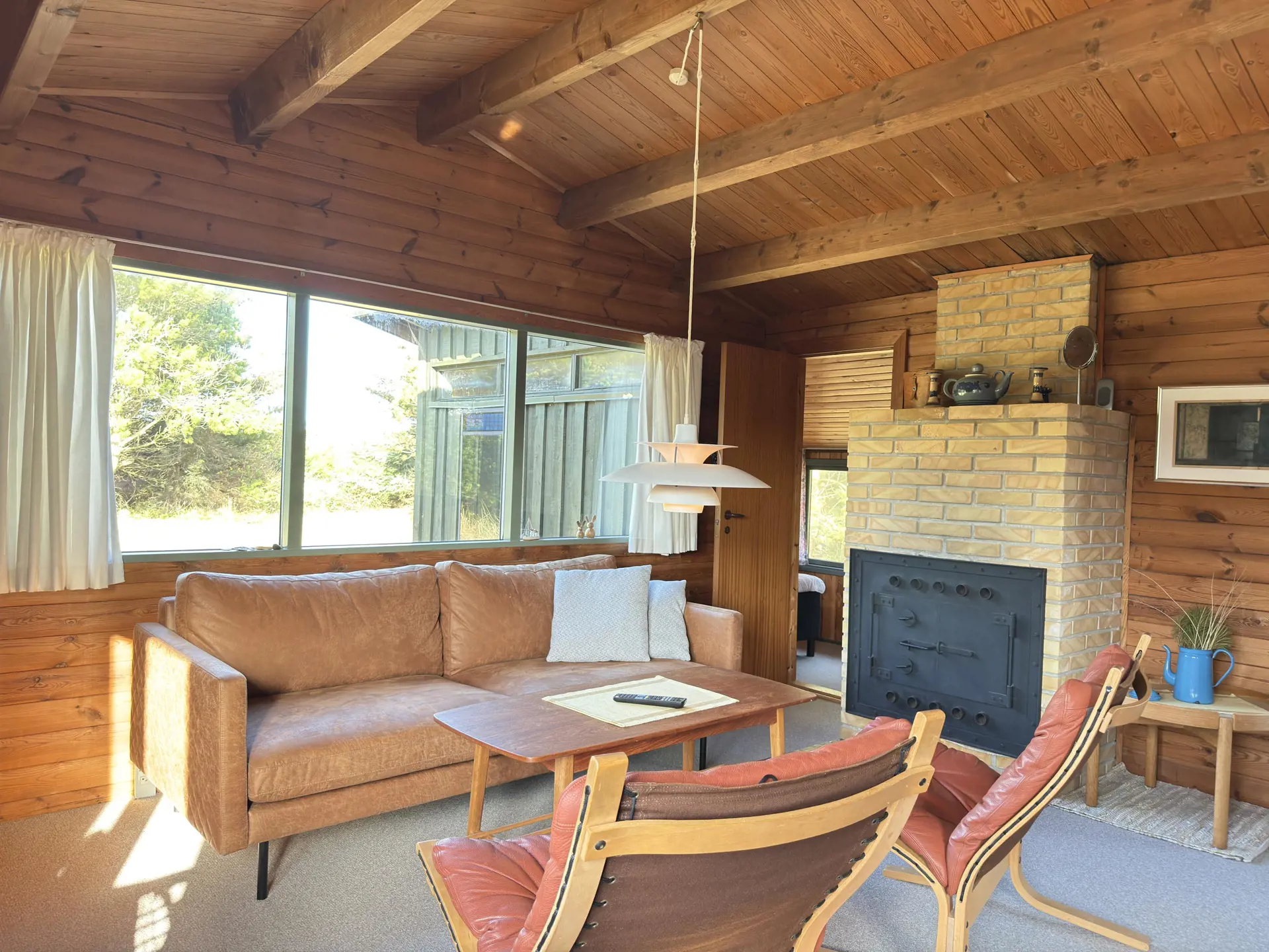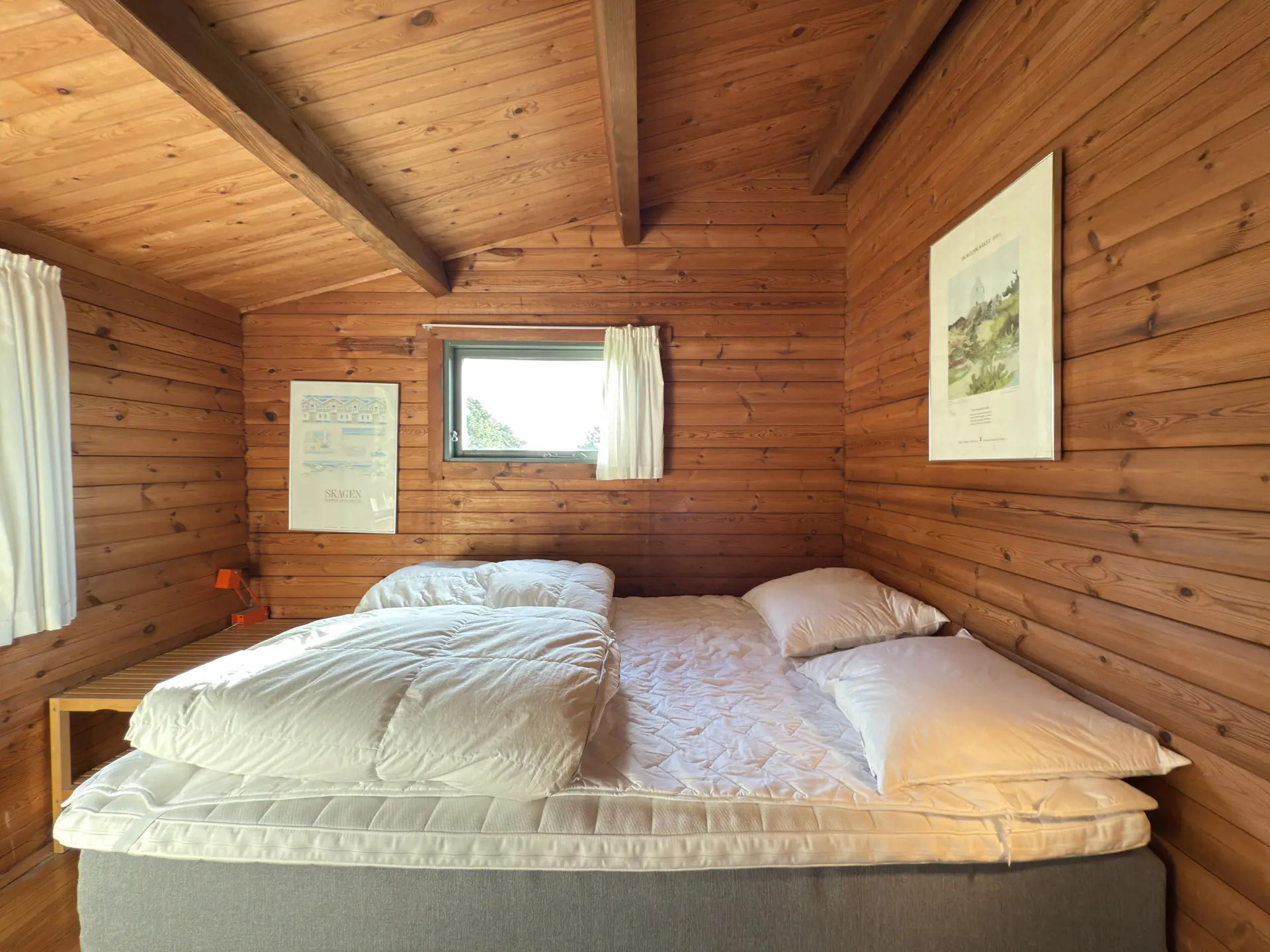 Hier gibt es keinen überflüssigen Luxus, aber jede Menge Charme, Ruhe und eine Natur, die sich ganz nah heranschmiegt. Ein Ferienhaus für alle, die einen richtigen Urlaub in einem richtigen Ferienhaus verbringen möchten. Das Haus bietet Platz für vier Personen und ist mit zwei gemütlichen Doppelzimmern ausgestattet. Perfekt für Paare, eine kleine Familie oder zwei befreundete Paare, die das ganz besondere Licht und die Natur Skagens erleben möchten. Innen erwarten Sie holzverkleidete Wände, eine behagliche Sofaecke und ein Essbereich im Wohnzimmer, ein Kaminofen für kühle Abende sowie eine feine Küche, in der Sie alles von frischem Fisch bis zu heißem Kakao in den Herbstmonaten zubereiten können. Das Badezimmer ist mit Waschbecken, Toilette und Dusche ausgestattet. Im Gäste-WC befindet sich außerdem die Waschmaschine des Hauses.