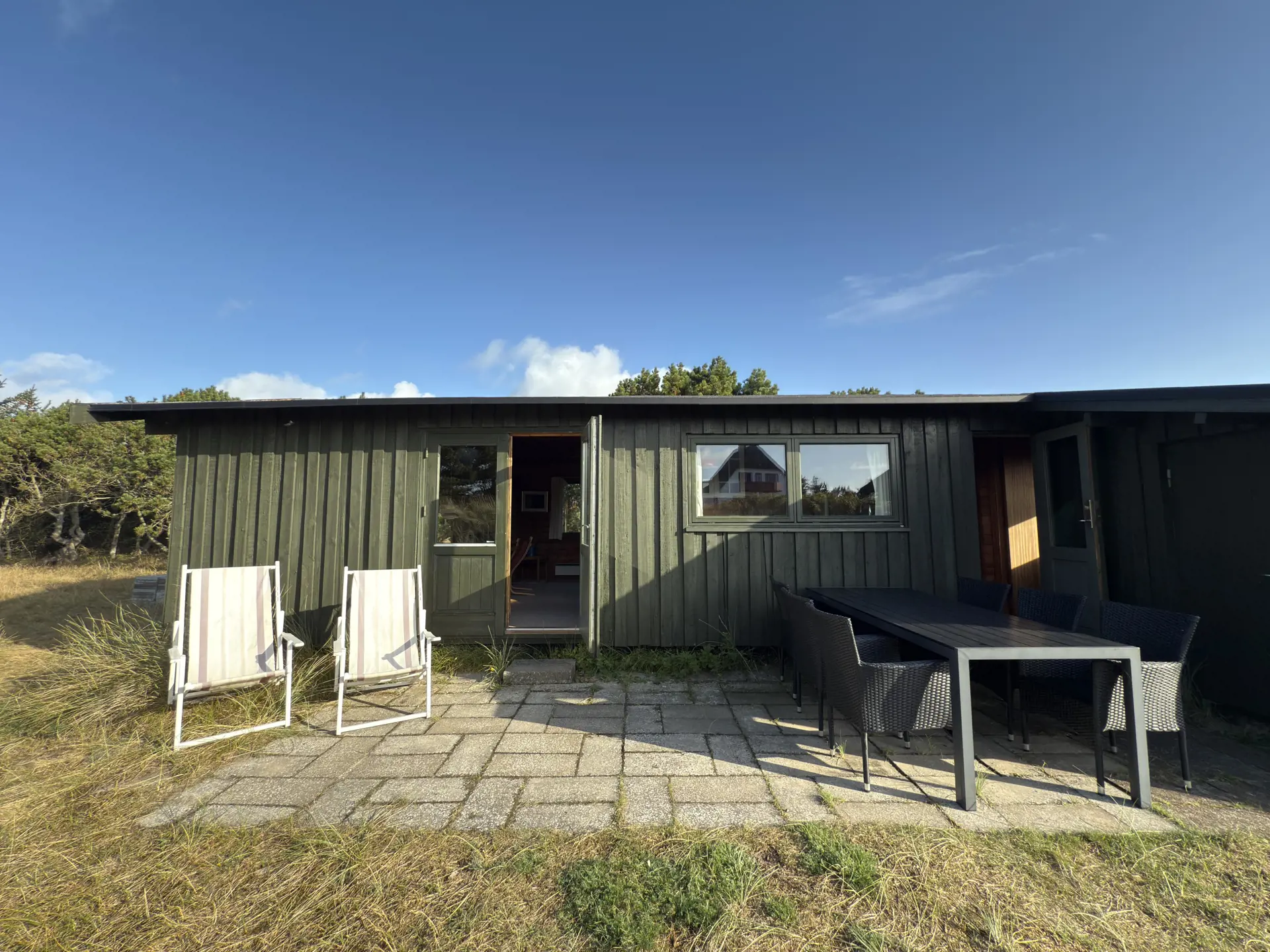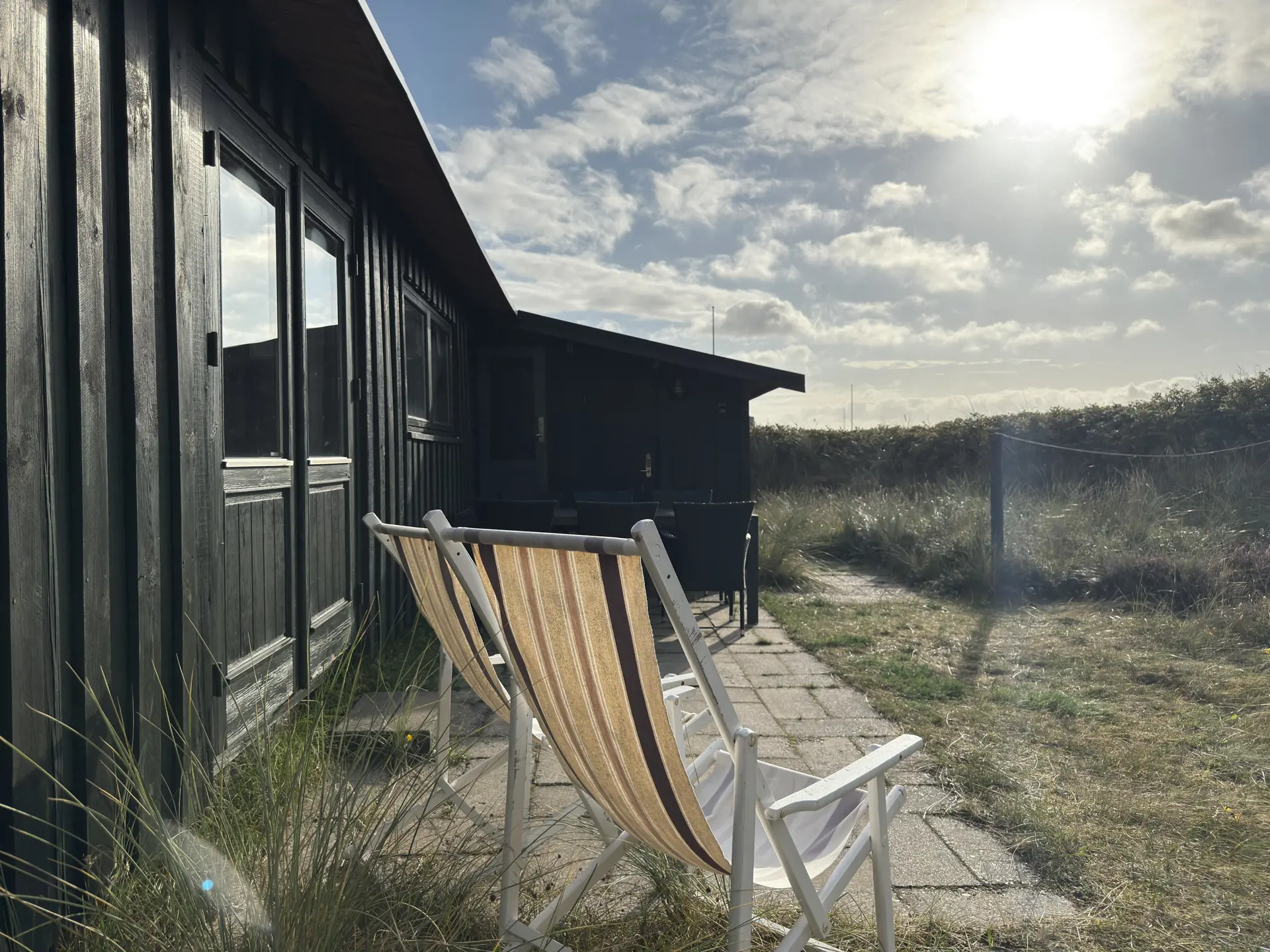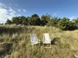 Im Außenbereich herrscht der Stil „wild mit Absicht“: Heidekraut, Strandhafer und hohes Gras geben dem Ferienhaus einen natürlichen Rahmen und eine ganz besondere Ruhe. Die Terrasse mit Gartenmöbeln, zwei Liegestühlen und Tischgrill lädt zu lauen Sommerabenden ein, während der Duft von Meer und Dünen in der Luft liegt. Ihre Wäsche trocknet in der Meeresbrise und erhält diesen ganz besonderen frischen Duft. Draußen finden Sie außerdem eine Außendusche, um Salz und Sand nach einem Bad in den Wellen abzuspülen.