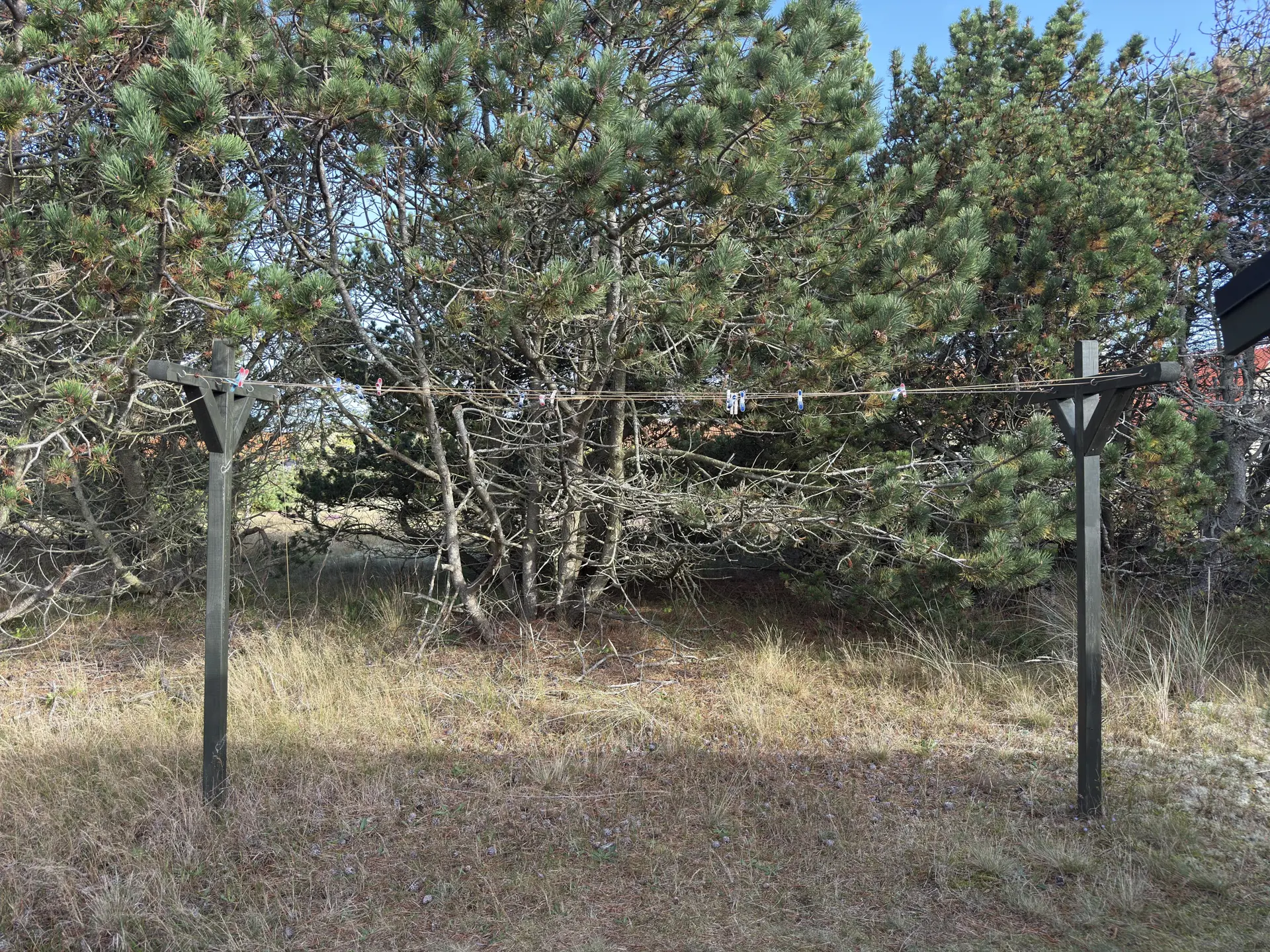 Waschmaschine und Wäscheleine.