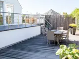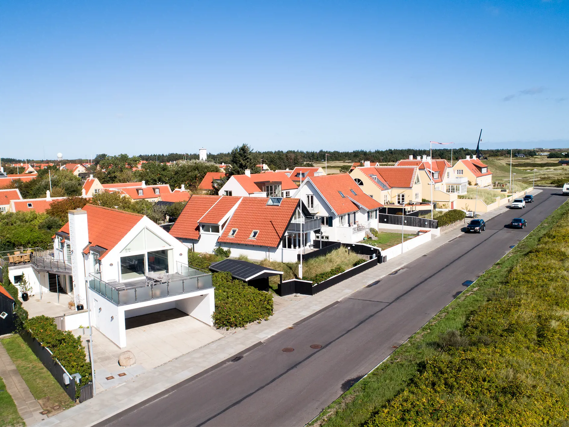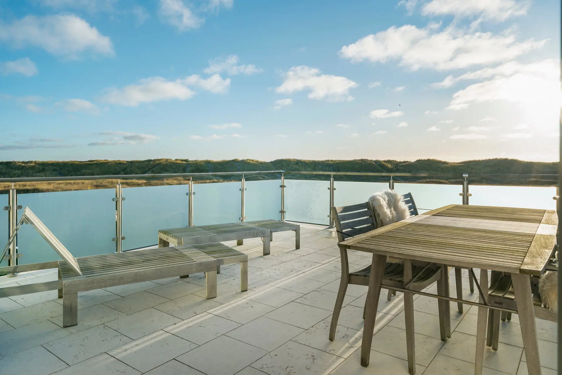 Im Außenbereich verwöhnt das Ferienhaus mit insgesamt drei Terrassen, Pflanzkübeln mit Strandhafer, zwei Außenduschen, Gartenmöbeln und Grill. Zudem besteht direkter Zugang zu Strand und Meer, nur 200 Meter von der Haustür entfernt.