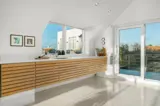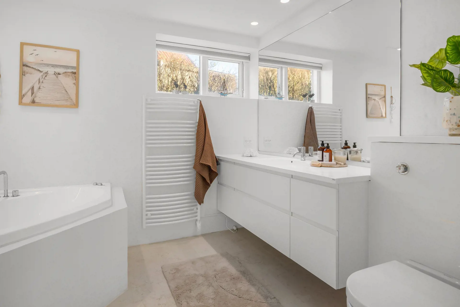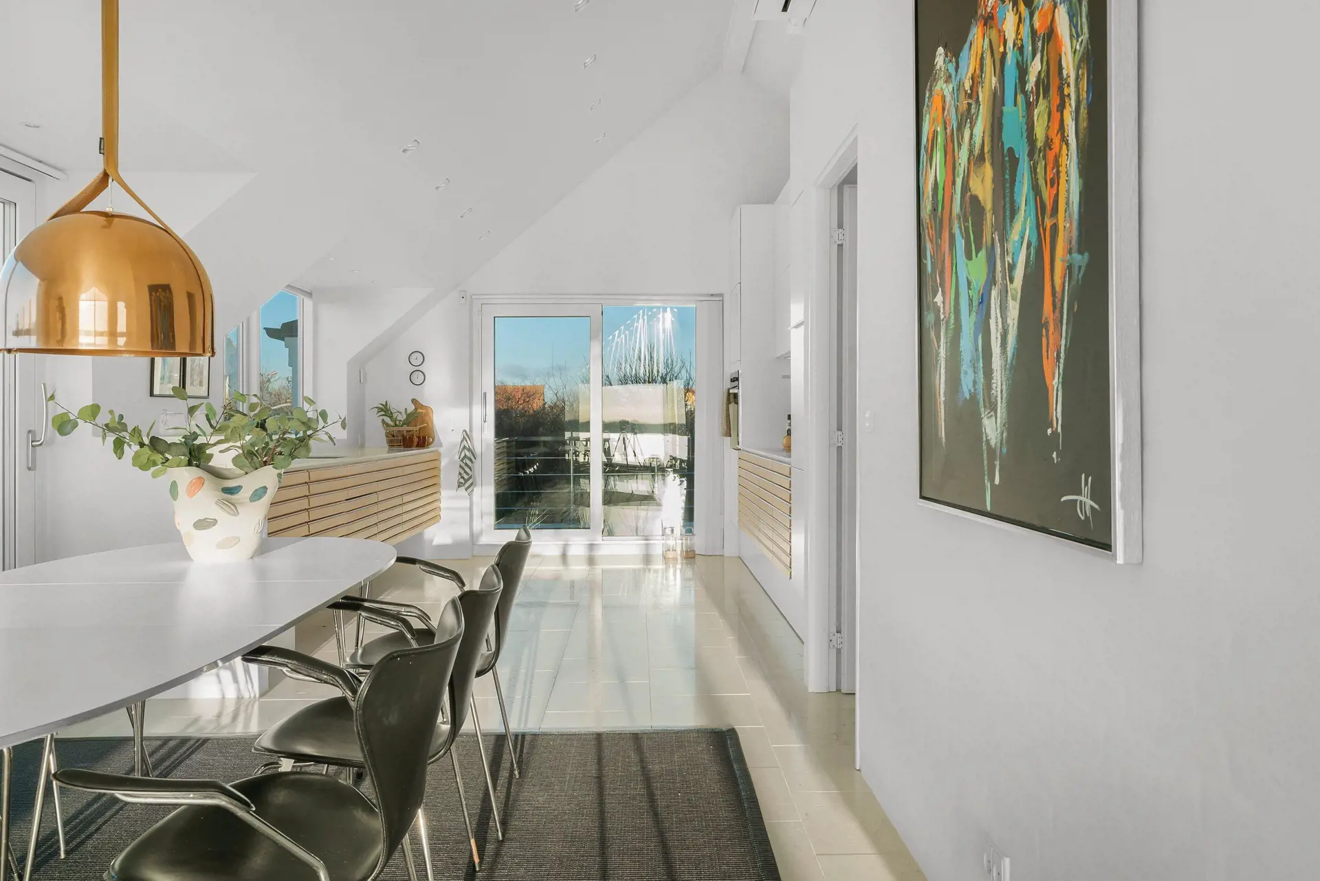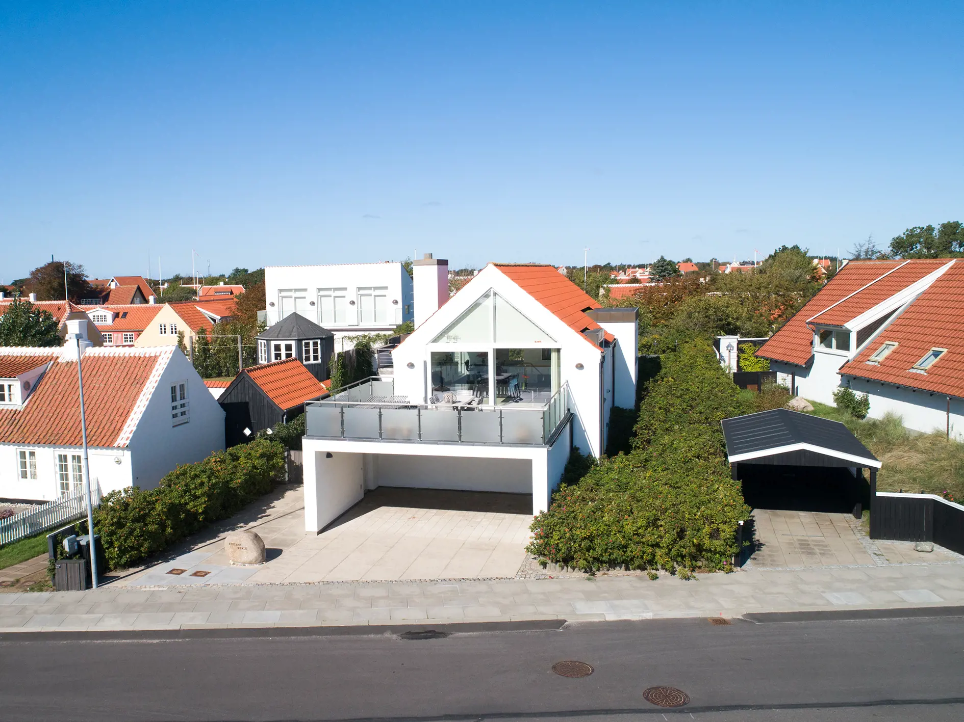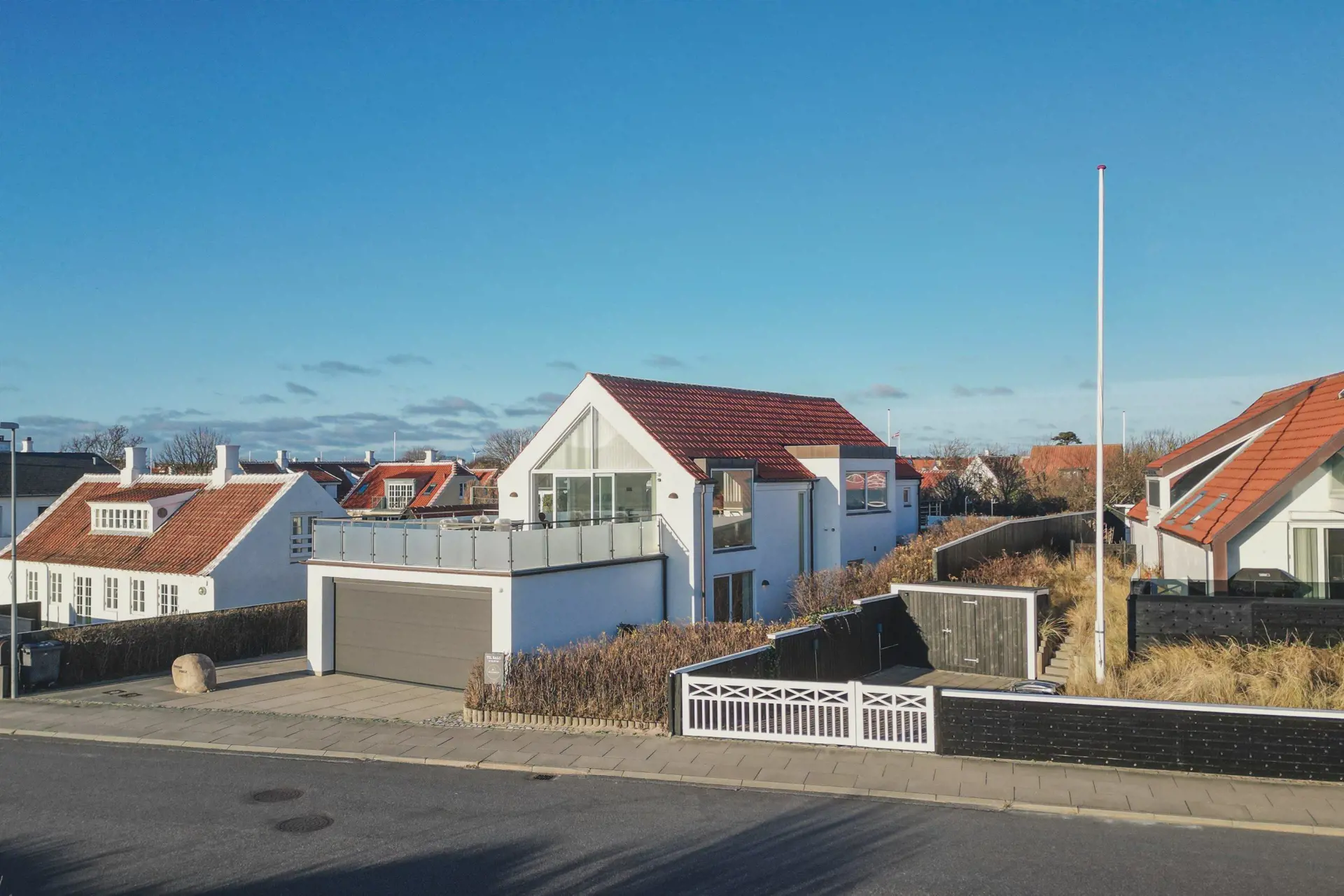 Dieses moderne, weiße Ferienhaus liegt im Stadtteil Østerby in Skagen, direkt am Kattegat und nur wenige Schritte vom ikonischen Vippefyr entfernt. Hier spürt man sofort die besondere Atmosphäre, die seit Generationen Künstler angezogen hat – nicht zuletzt zu Sankt Hans, wenn der Strand jedes Jahr am 23. Juni von Lagerfeuern erleuchtet wird, ganz wie in Krøyers berühmtem Motiv.