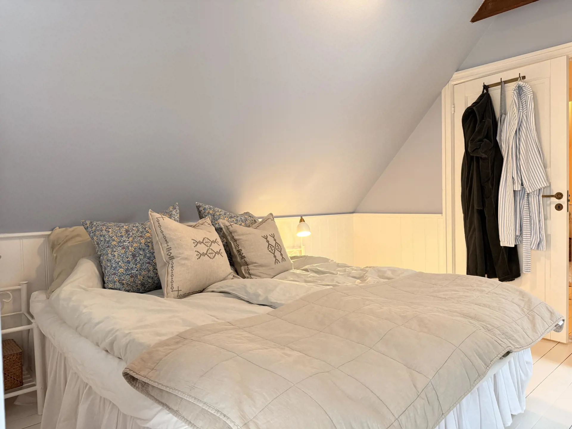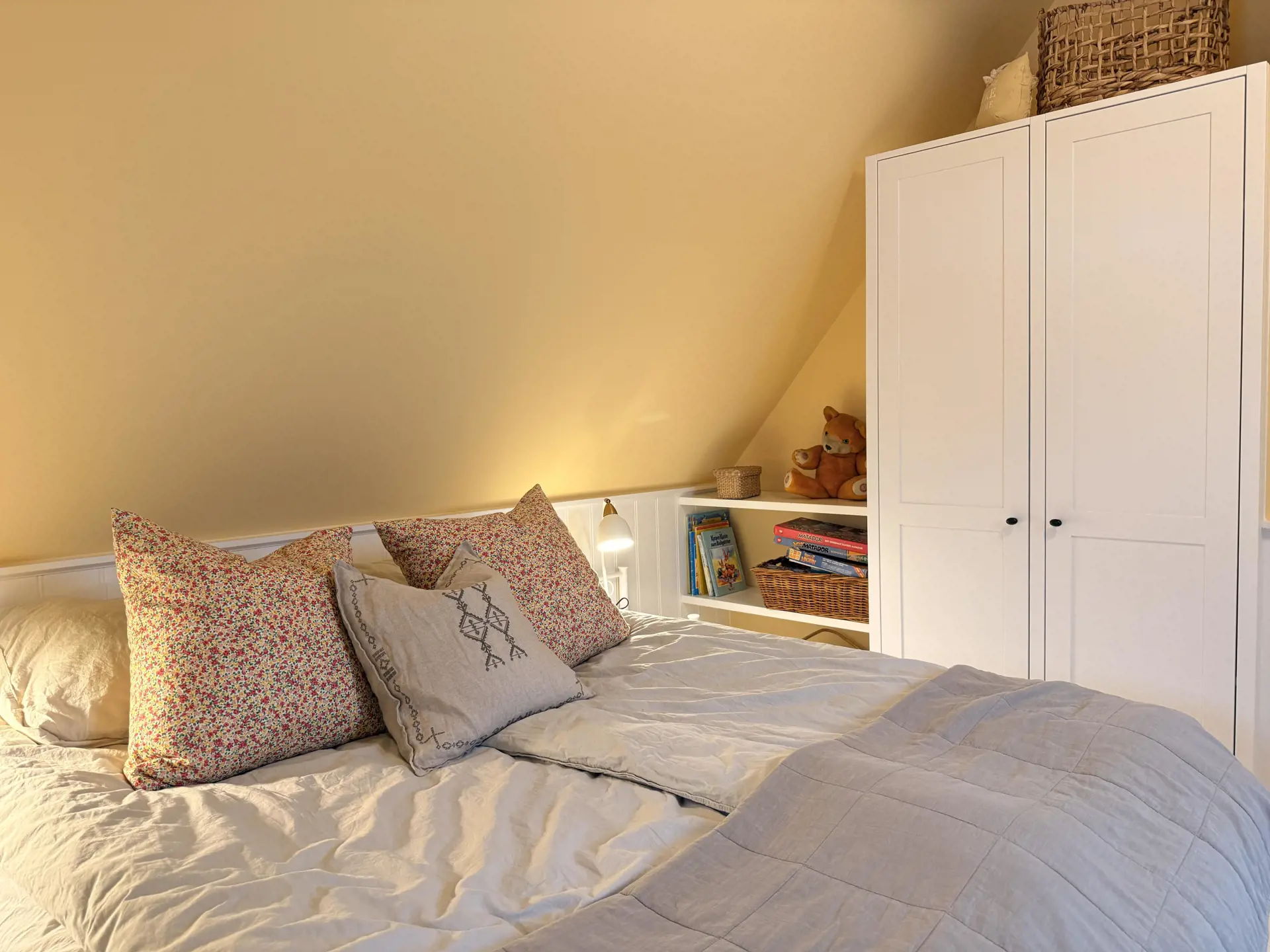 Zwei Schlafzimmer mit Doppelbett (160 × 200 cm) im Obergeschoss.