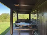 Die Blockhütte liegt auf einem 3.500 m² großen Naturgrundstück und bietet 12 m² überdachte Terrasse sowie 15 m² offene Terrasse. Von der überdachten Terrasse genießt man eine herrliche Aussicht über die Landschaft und wunderschöne Sonnenuntergänge. Die Ferienunterkunft liegt nur eine kurze Entfernung von der Råbjerg Mile, der größten Wanderdüne Dänemarks, entfernt.