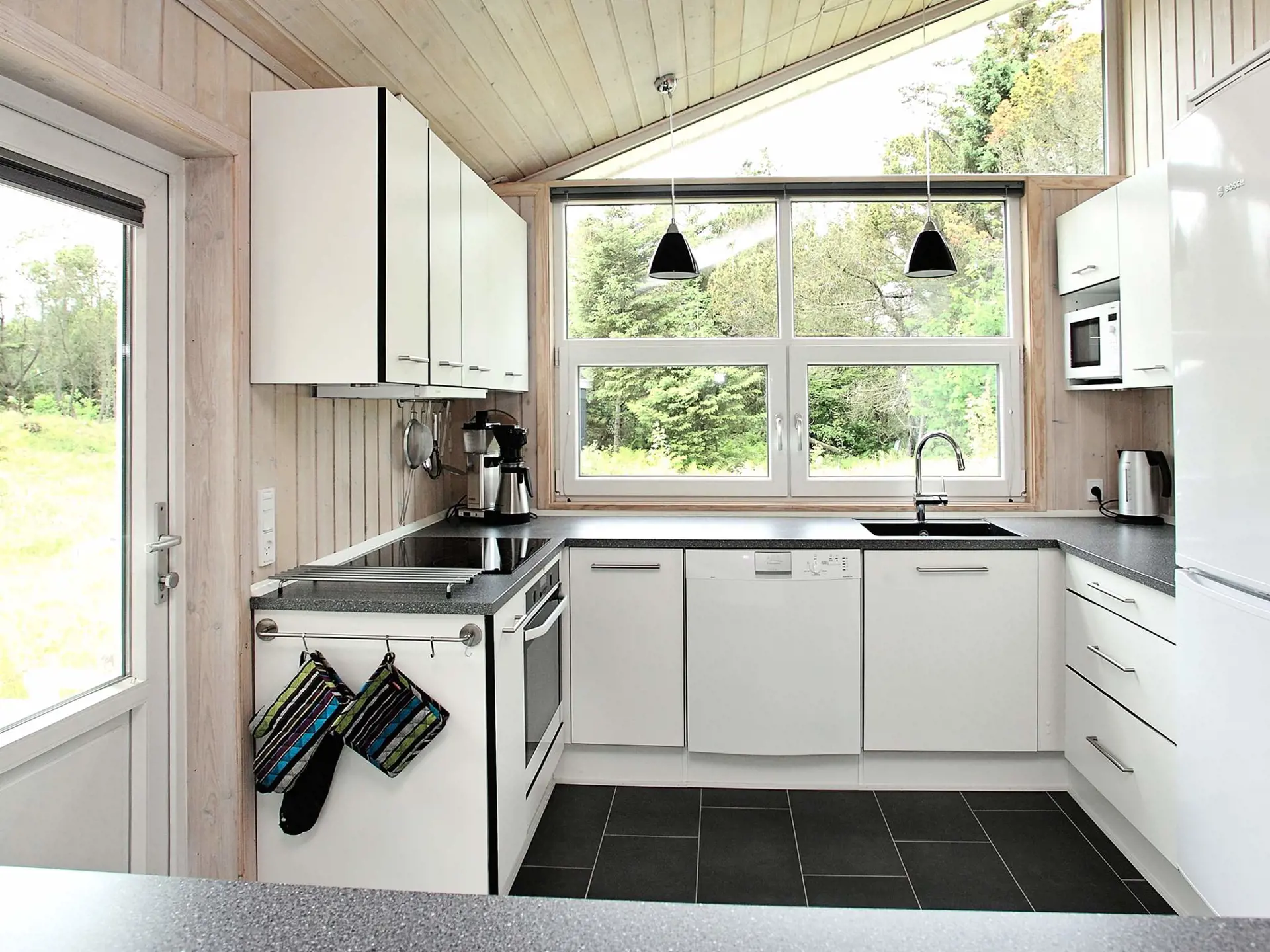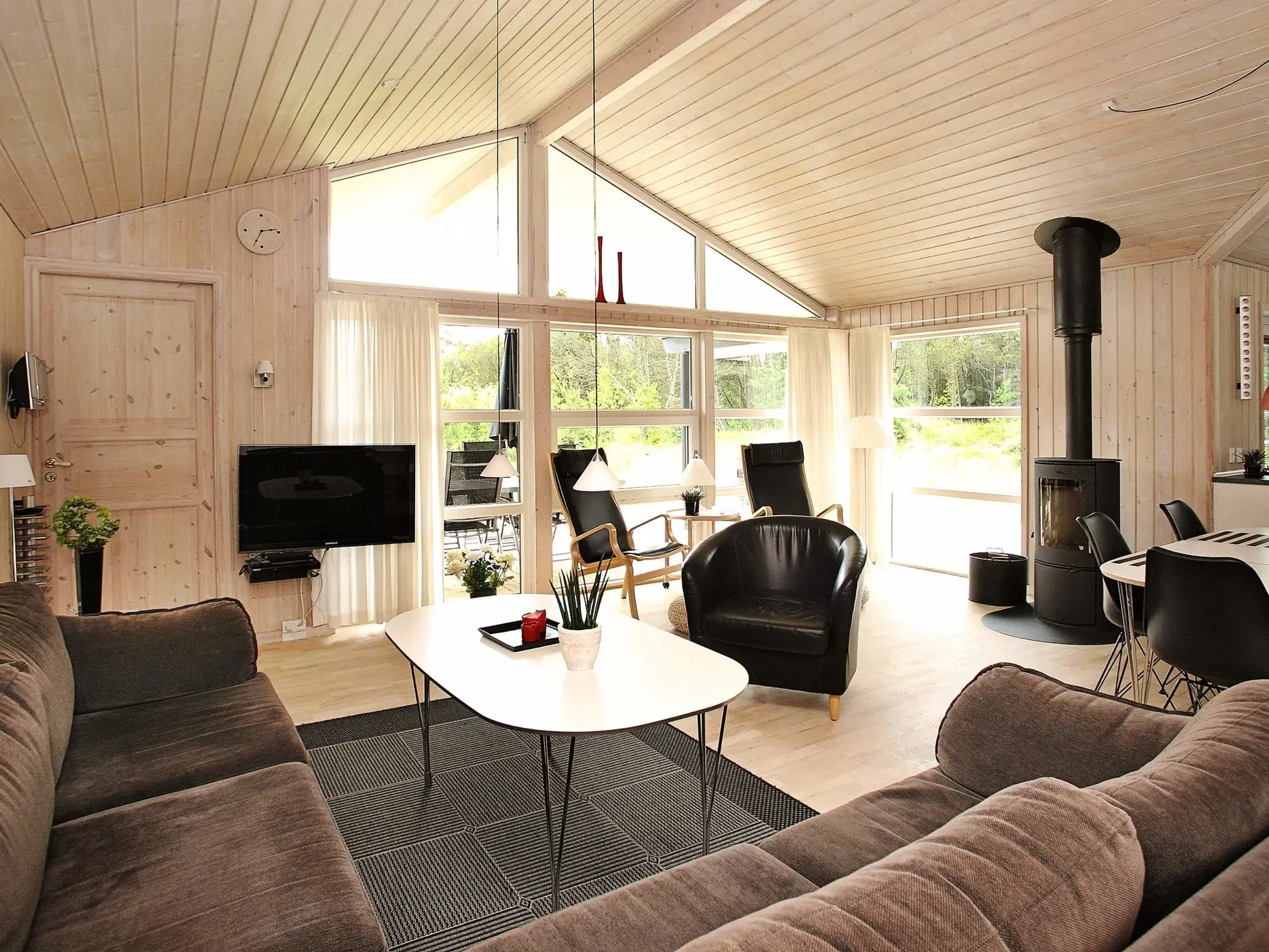 Mitten auf einem großen, abgeschirmten Naturgrundstück am Ende einer Sackgasse finden Sie dieses ansprechende Ferienhaus. Mehrere Terrassenflächen führen um das Haus herum, so dass Sie hier schöne Stunden z.B. auf einer der vier Sonnenliegen verbringen können. Von dem Grundstück führt eine kleine Treppe zu einer Terrasse, wo Sie sitzen und den Blick auf die Nordsee genießen können. Gute Raumverteilung mit Zimmern (zwei mit kleinem Meerblick) an jedem Ende und zwei Badezimmern mit WC. Küchen-/Aufenthaltsbereich und Blick in die Natur. Es wurde eine Wärmepumpe/Klimaanlage installiert.