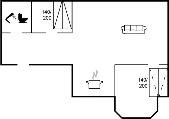 Die Schlafplätze verteilen sich auf 2 Schlafräume. 2 Schlafplätze in einem Doppelbett. 2 Schlafplätze auf einer Doppelschlafcouch.