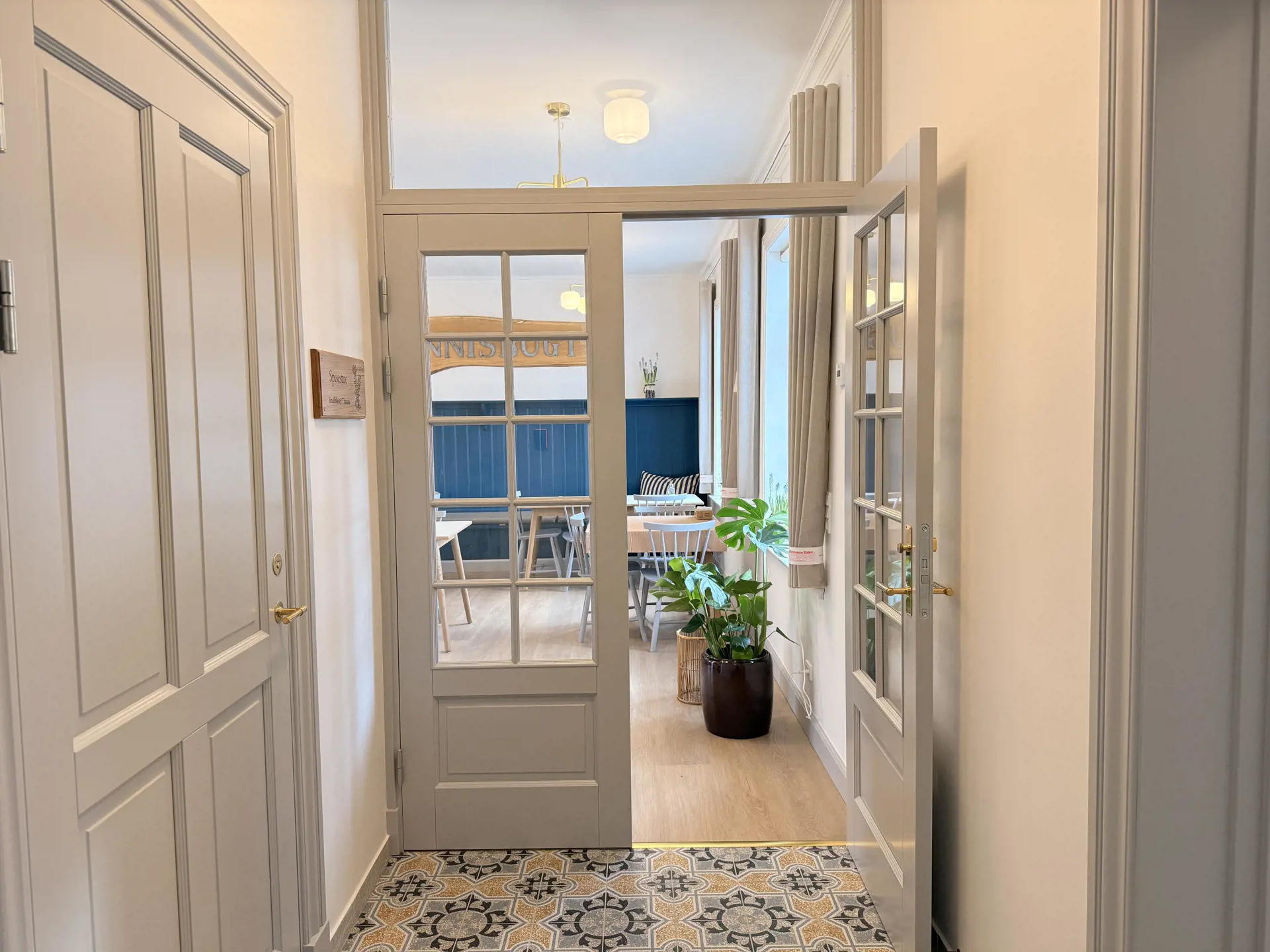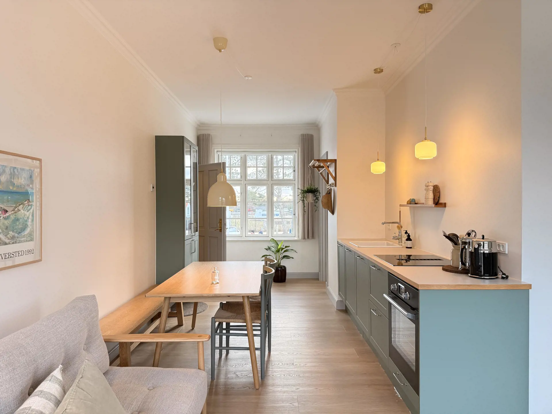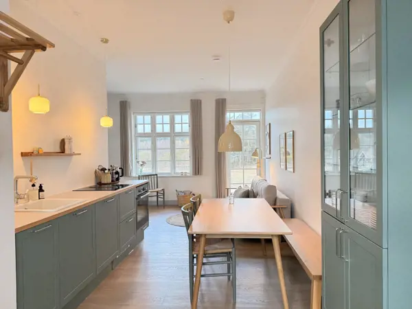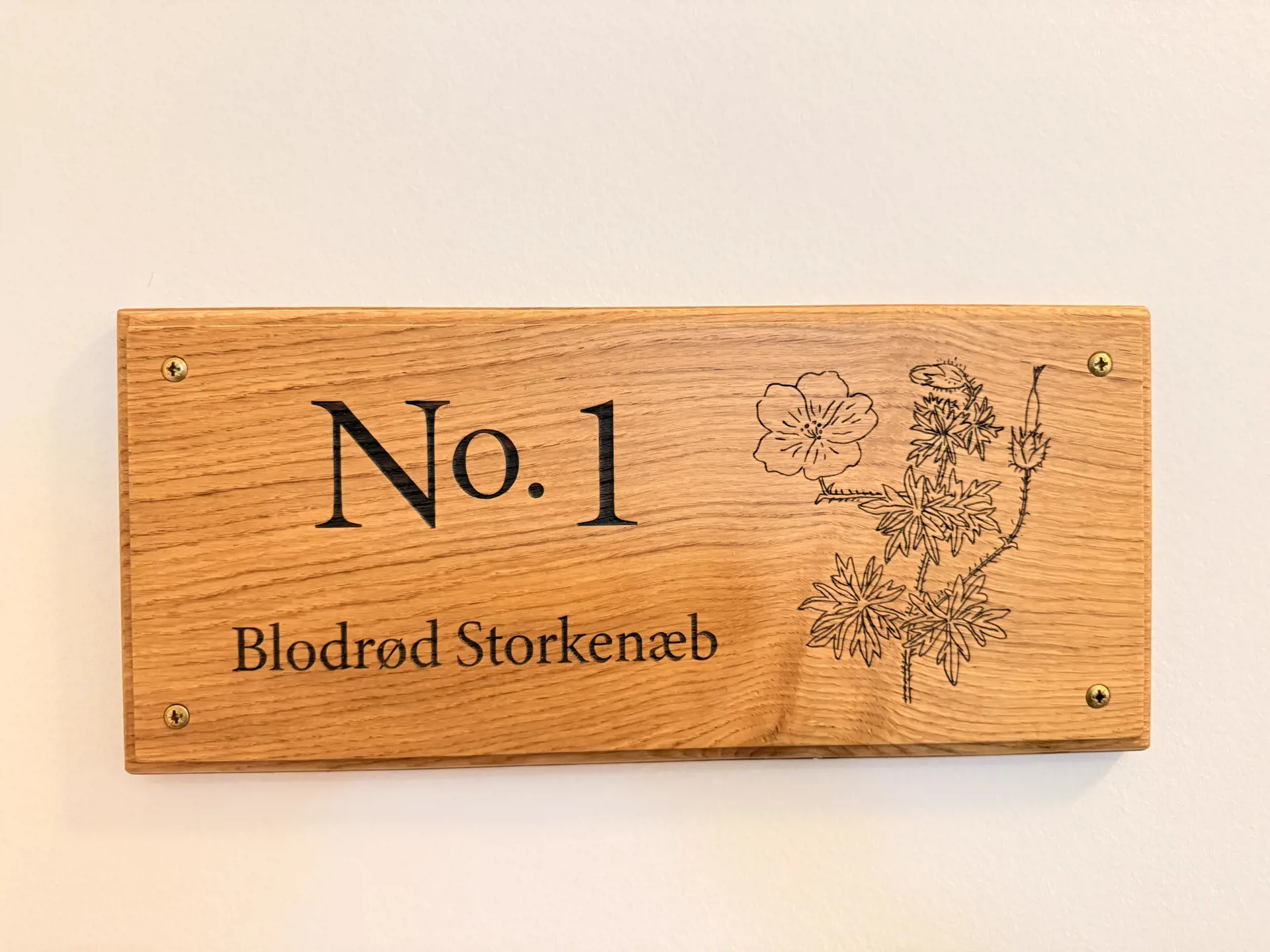 Die Wohnung trägt die Nummer 1, hat aber auch ihren ganz eigenen Namen: „Blodrød Storkenæb“. Die Zimmer und Apartments der Badepension sind alle nach Kräutern und Pflanzen benannt. Hier legt man Wert auf die Nähe zur Natur, Ruhe und die persönliche Atmosphäre, die die klassischen Badepensionen auszeichnet.