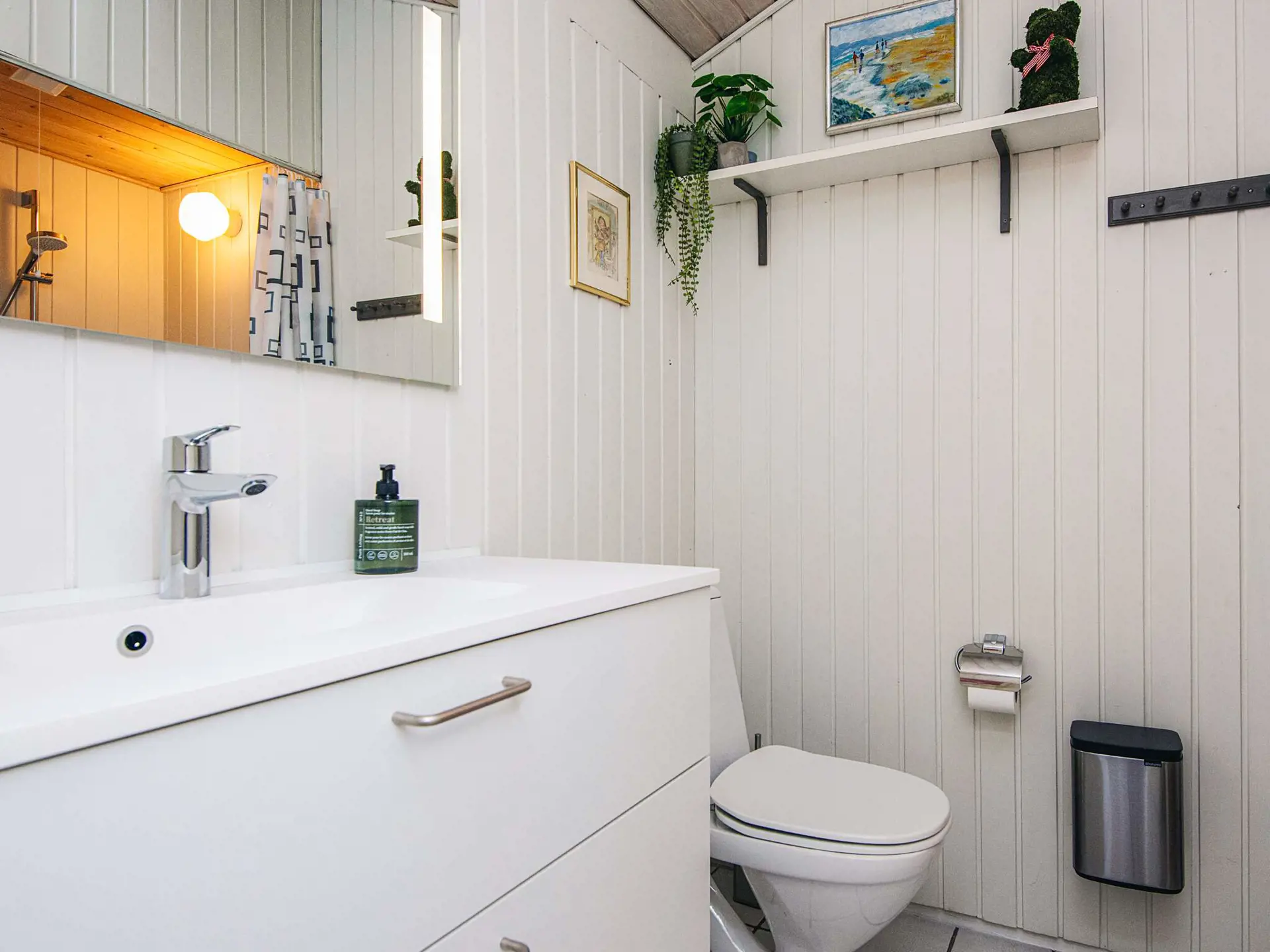 Praktisch aufgeteilt mit Schlafzimmern an beiden Enden und einem großen Loft, das mit zwei Sitzsäcken als gemütlicher Aufenthalts-/Spielraum eingerichtet ist. Im Hauswirtschaftsraum befindet sich außerdem eine zusätzliche Gefriertruhe.