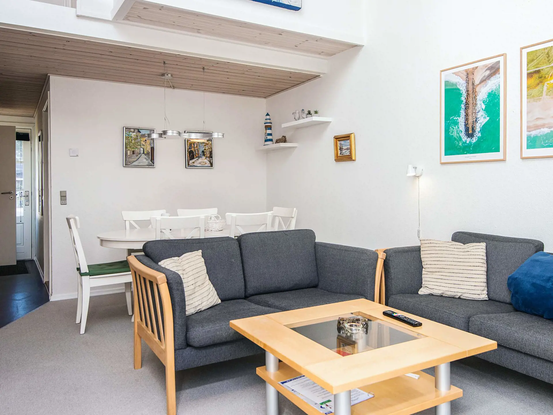 Ferienwohnung in Endlage, vorne in der 3. Reihe nahe Meer und Hafen in Agger. Die Wohnung hat zwei Ebenen und ist gut aufgeteilt mit drei separaten Schlafzimmern; eines im Erdgeschoss mit einem Doppelbett, zwei weitere Zimmer oben in der 1. Etage. Diese sind mit einem Etagenbett mit zwei Kojen (70x190 cm) bzw. zwei Einzelbetten, die zu einem Doppelbett zusammengestellt werden können, eingerichtet.