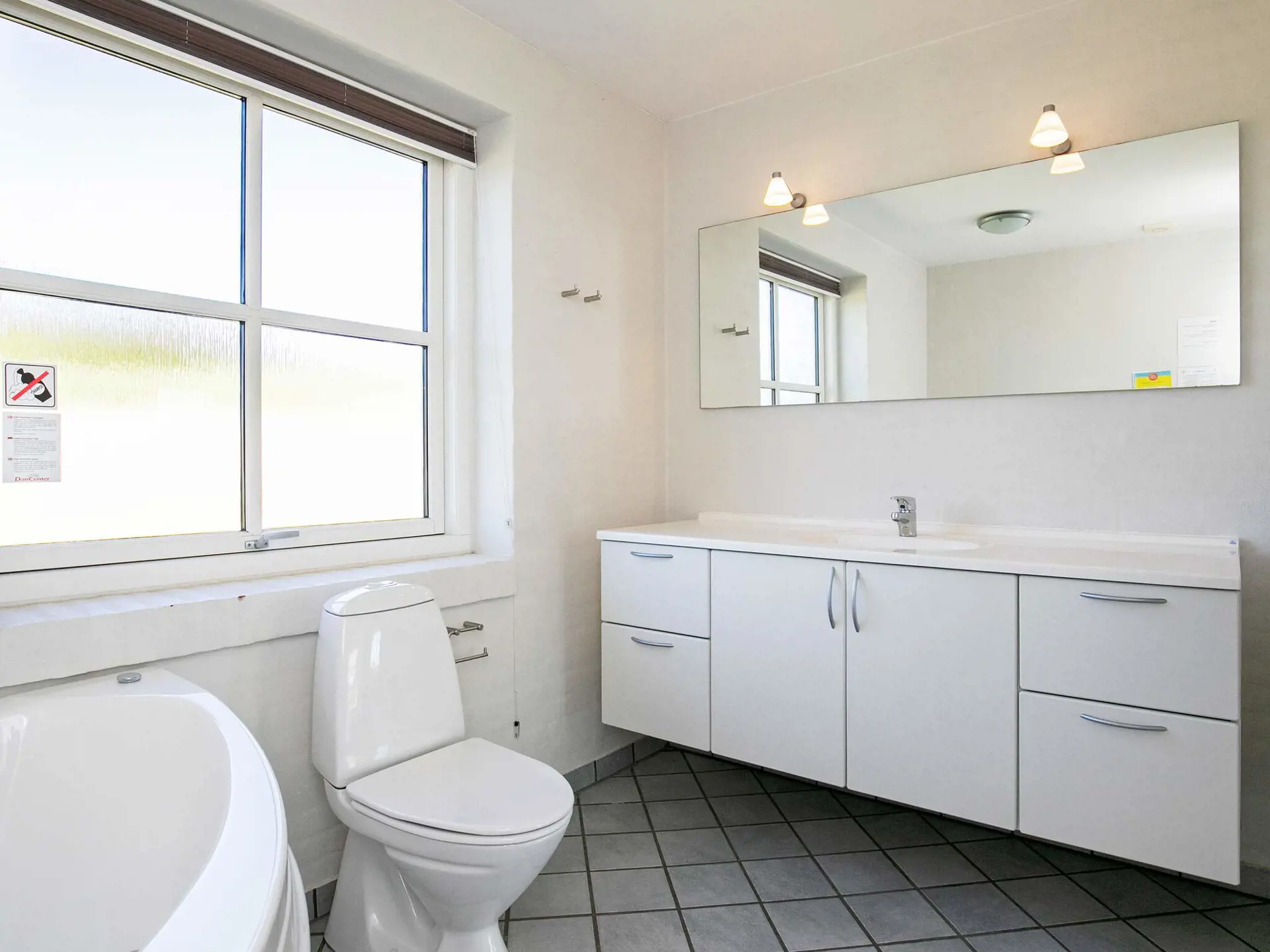 sind, ist der Boden gefliest und beheizt. Zwei Badezimmer mit