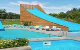 Genießen Sie auf der Terrasse die Nähe der Natur und entspannen Sie in der Sonne und schwimmen Sie im mit anderen Gästen geteilten Pool, während Ihre Kinder sich auf dem großen Gelände vergnügen.