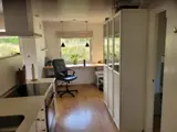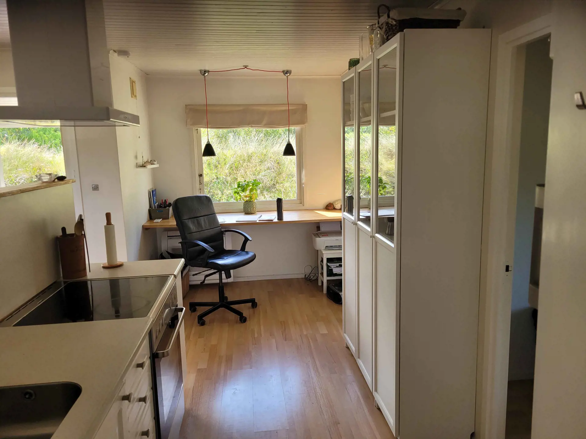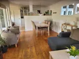 Das 70 m² große Haus verfügt über eine offene Küche mit Wohnbereich, ein Badezimmer mit Fußbodenheizung sowie drei Schlafzimmer mit insgesamt sechs Schlafplätzen. Das Nebengebäude kann bei Bedarf genutzt werden. Die Einrichtung ist schlicht und funktional.