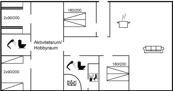 In den Dünen bei Åstien liegt dieses schöne, geräumige Ferienhaus mit einem Hobbyraum. Das Haus ist so gebaut, daß der Hobbyraum das Haupthaus und die Gäste- Kinderabteilung trennt.