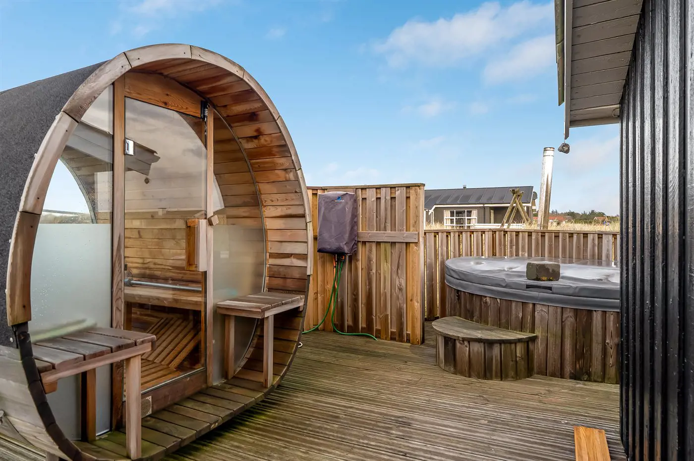 Zum Haus gehört eine schöne, teilweise überdachte Terrasse mit Hot-Tub und Sauna.