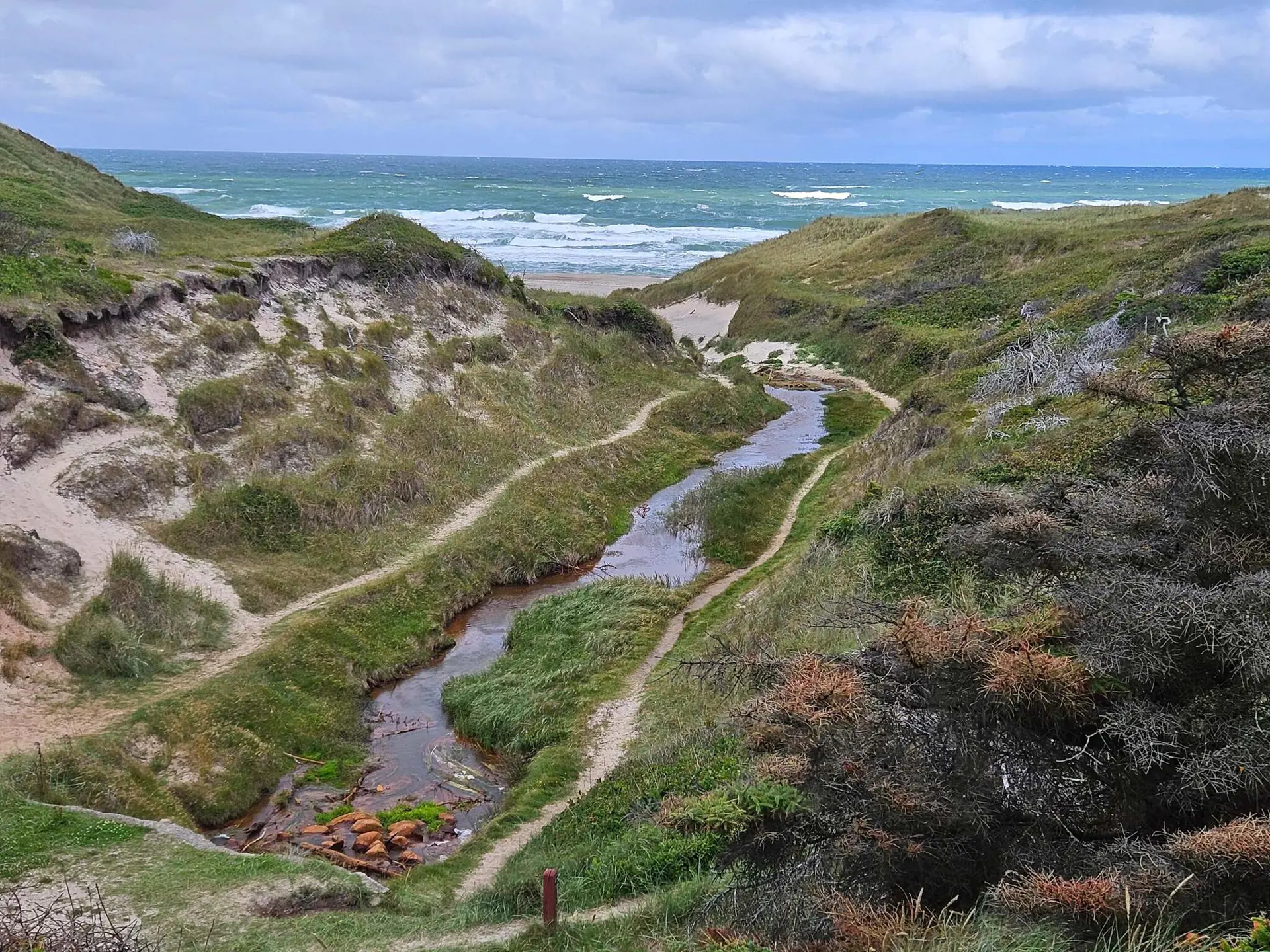 Das Ferienhaus liegt auf einem 1.500 m² gr. Grundstück, in einem unter Naturschutz stehenden Gebiet, in der früheren Fischersiedlung Stenbjerg. Etwa 4 km weiter nördlich liegt der kl. Ferienort Vorupør, wo einige Geschäfte das ganze Jahr über geöffnet haben.