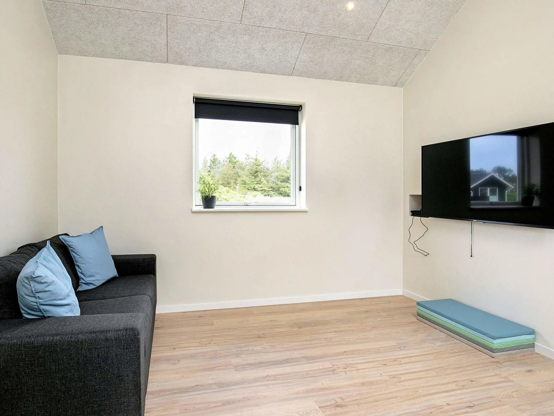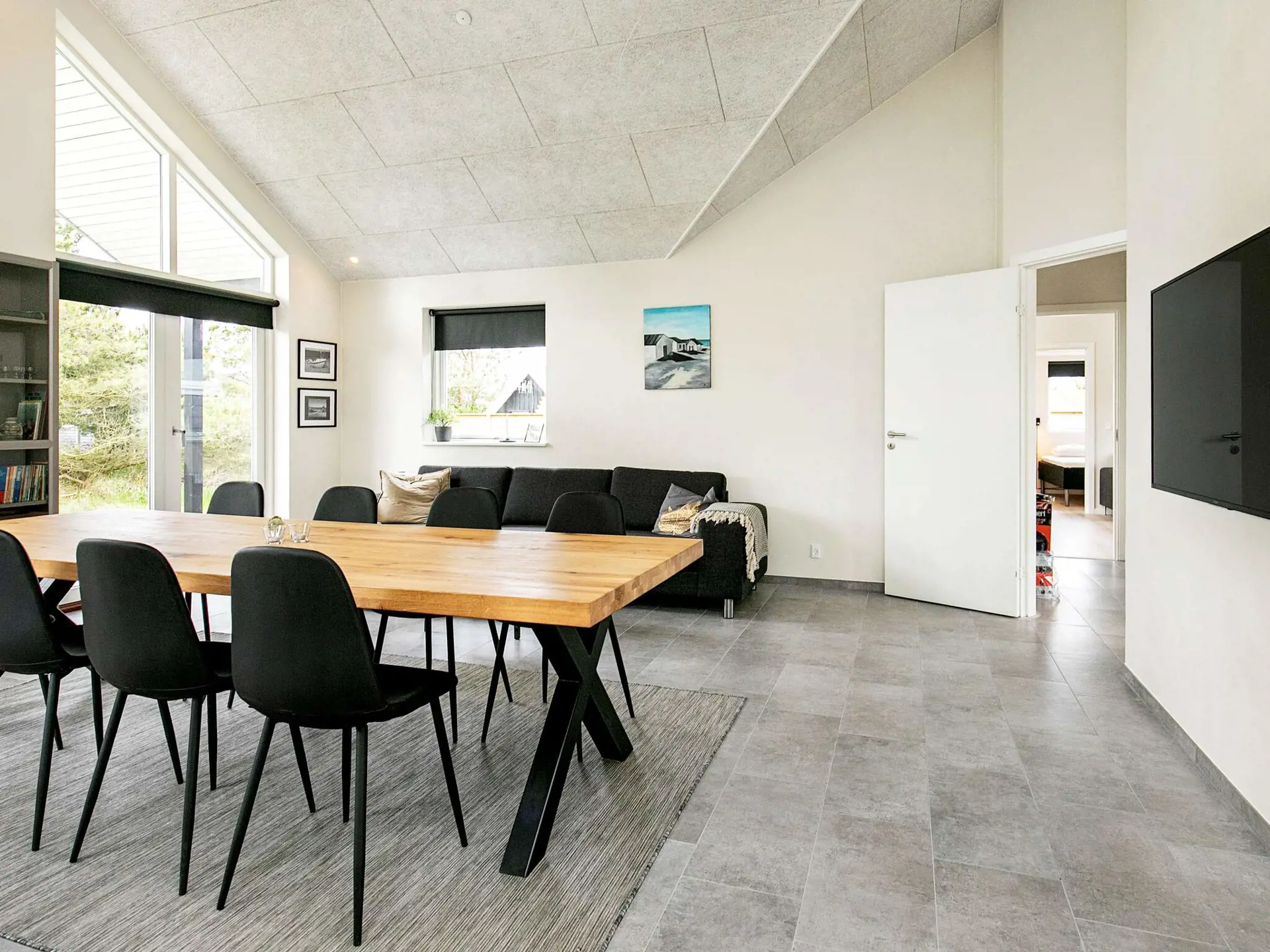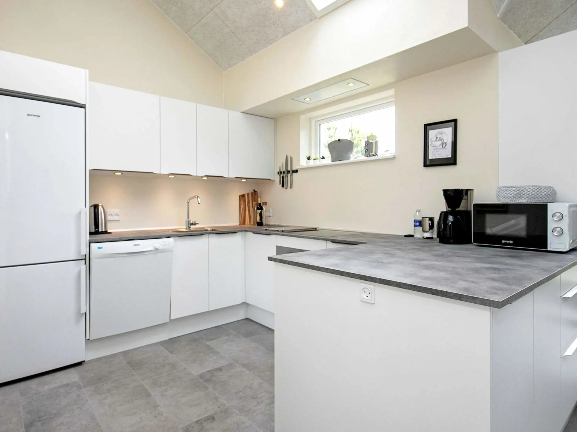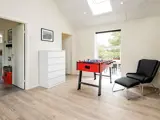 Die Einrichtung ist durchgehend modern und wohnlich gestaltet, das Mobiliar sowie die technische Ausstattung sind zeitgemäß und umfassend. Für den Freizeitspaß gibt es einen großen Aktivitätsraum mit Tischtennis, Tischkicker etc. Das Haus hat vier Schlafzimmer mit jeweils zwei Betten sowie ein großes Loft mit zwei weiteren Schlafplätzen. Es gibt zwei Badezimmer, beide mit Dusche und Fußbodenheizung, eines zudem mit Whirlpool. Praktische Hilfsmittel wie Waschmaschine und Wäschetrockner sind ebenfalls vorhanden. Das Haus wird mittels einer energieeffizienten Wärmepumpe beheizt.