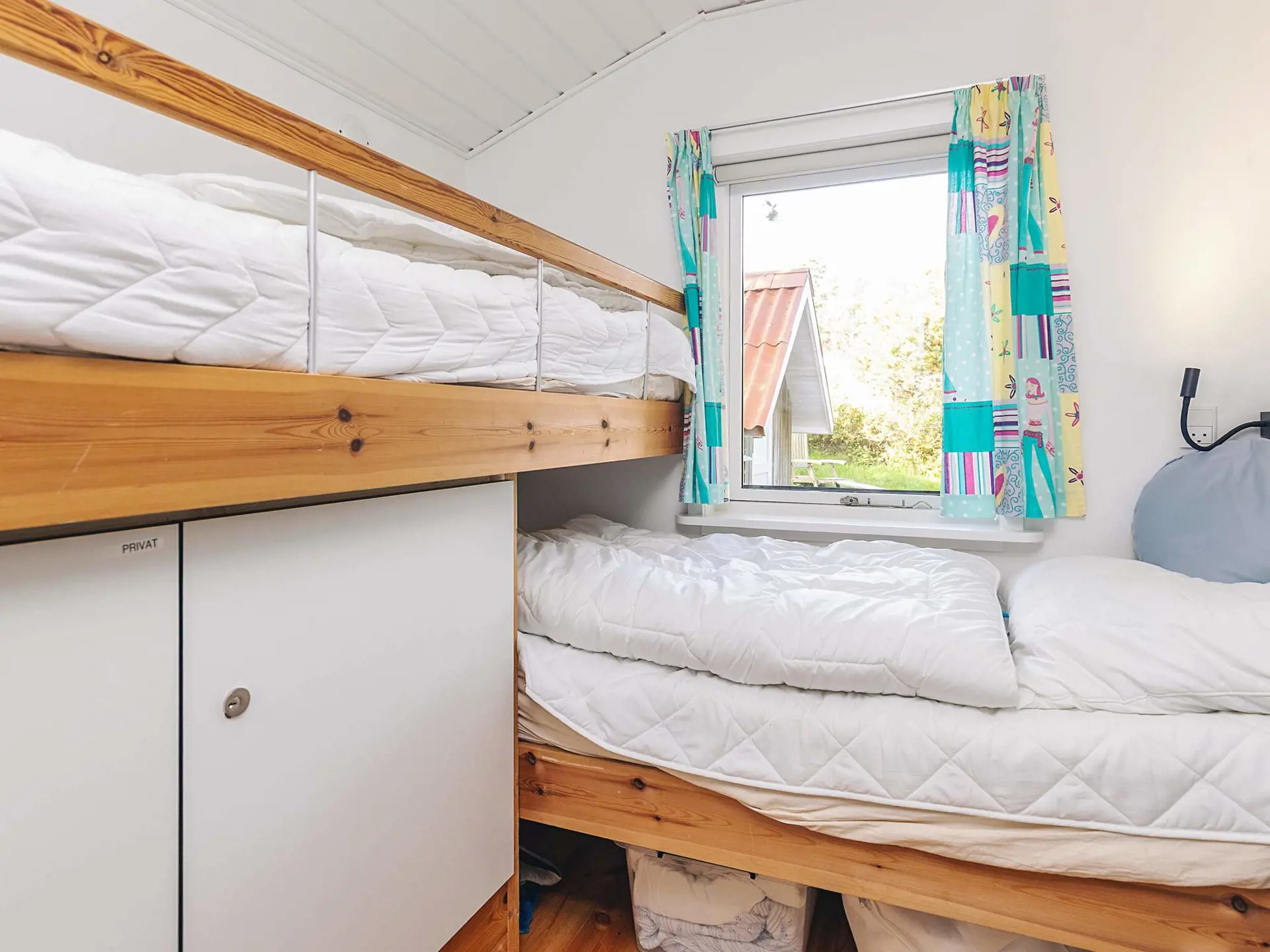 Drei Schlafzimmer mit jeweils Doppelbett bzw. 2 Einzelbetten und 2 Kojen in einem Etagenbett. Küche mit Geschirrspüler. Im Wohnzimmer gibt es Smart-TV und einen Holzofen. Auf der Terrasse, die umzäunt ist, findet man Gartenmöbel und einen Holzkohlegrill vor. Badezimmer mit WC und Dusche sowie angenehmer Fußbodenheizung.