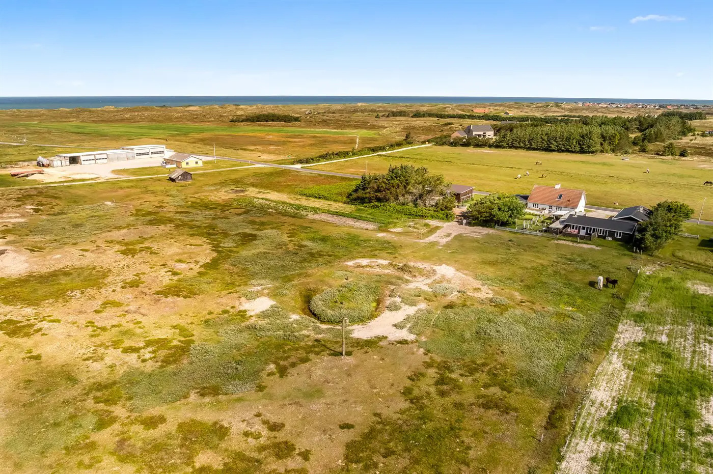 Die Ferienunterkunft liegt auf einem 3000 m² großen Dünengrundstück.Naturgrundstück. Die Entfernung zum Meer beträgt 900 m. Die nächste Einkaufsmöglichkeit liegt 900 m entfernt. Es steht ein offenes Terrassenareal zur Verfügung. Parkplatz auf dem Grundstück.