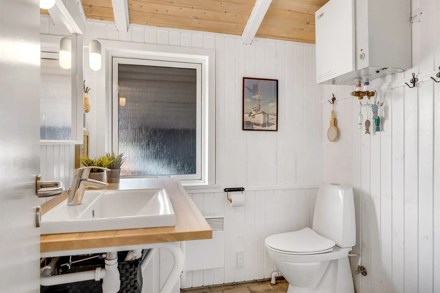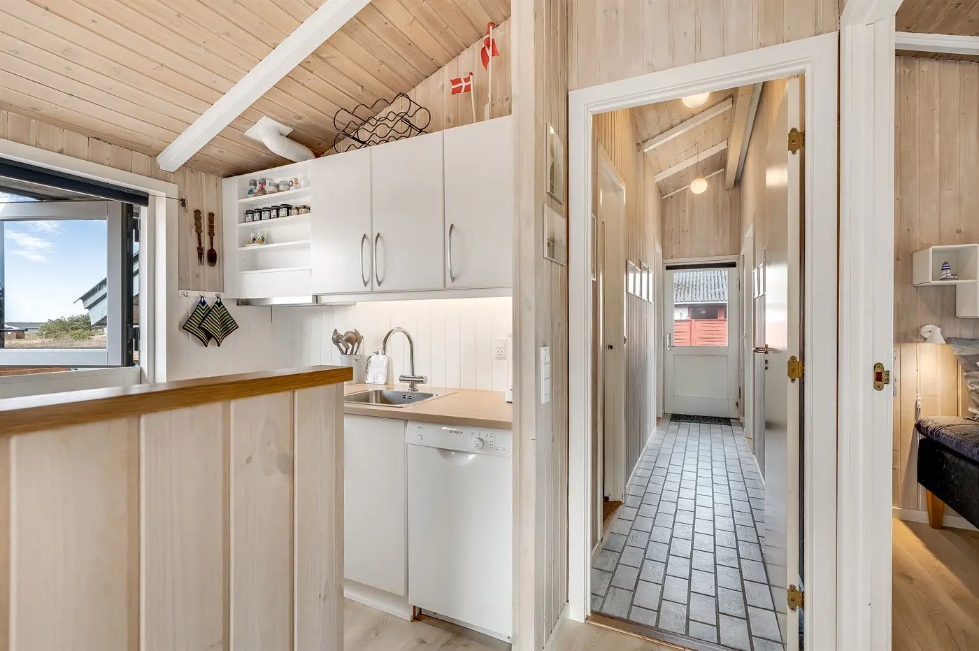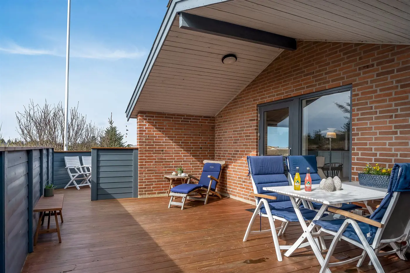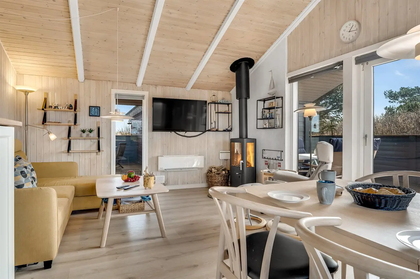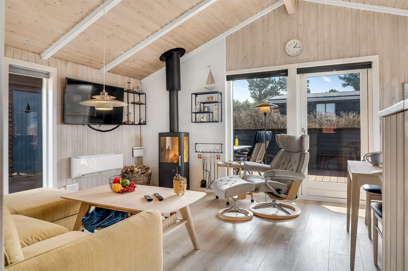 1 Smart-TV. Mindestens 4 dänische Fernsehsender. Mindestens 4 deutsche Fernsehsender. Es steht kabellose Internetverbindung zur Verfügung.