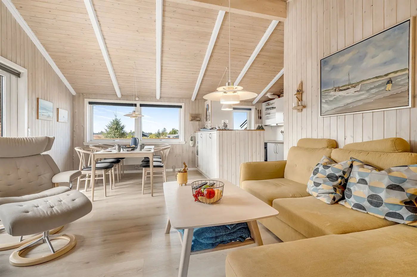 Im schönen Vorupør, in einer ruhigen Straße, liegt dieses nette Ferienhaus. Das Haus verfügt über eine große, teilweise überdachte Terrassenfläche, die das Haus umgibt. Außerdem gibt es eine schöne Wohnküche, in dem ihr u. a. gemütliche Abende vor dem Kaminofen verbringen könnt.
