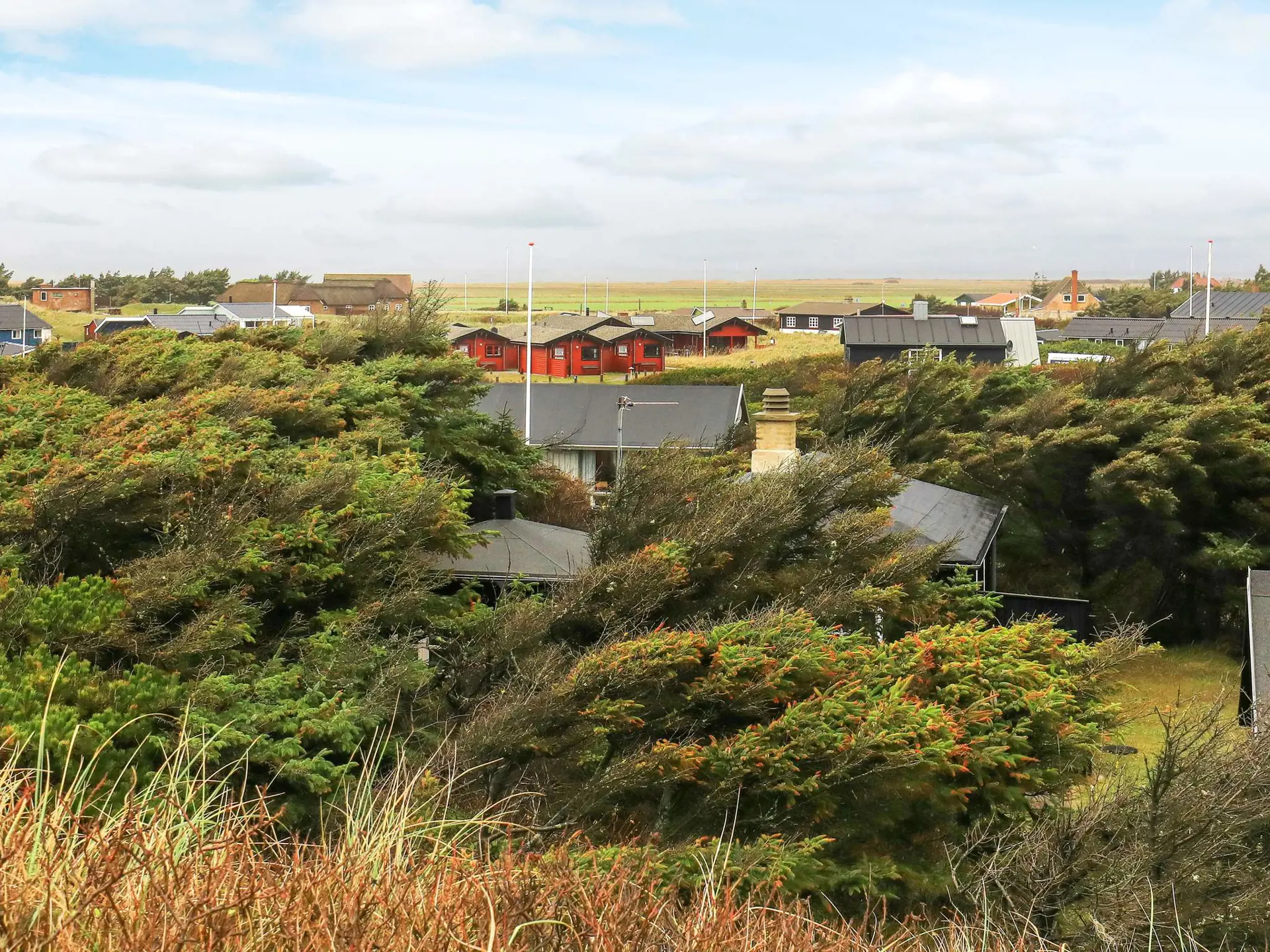 Das Ferienhaus besteht aus einer kleinen Küche, einem Wohn- und Esszimmer mit zwei Schlafplätzen sowie einem Schlafzimmer mit Dreiviertelbett. Oben von der Düne in der Nähe kann man sowohl den Ausblick zum Fjord im Osten als auch zur Nordsee im Westen genießen.