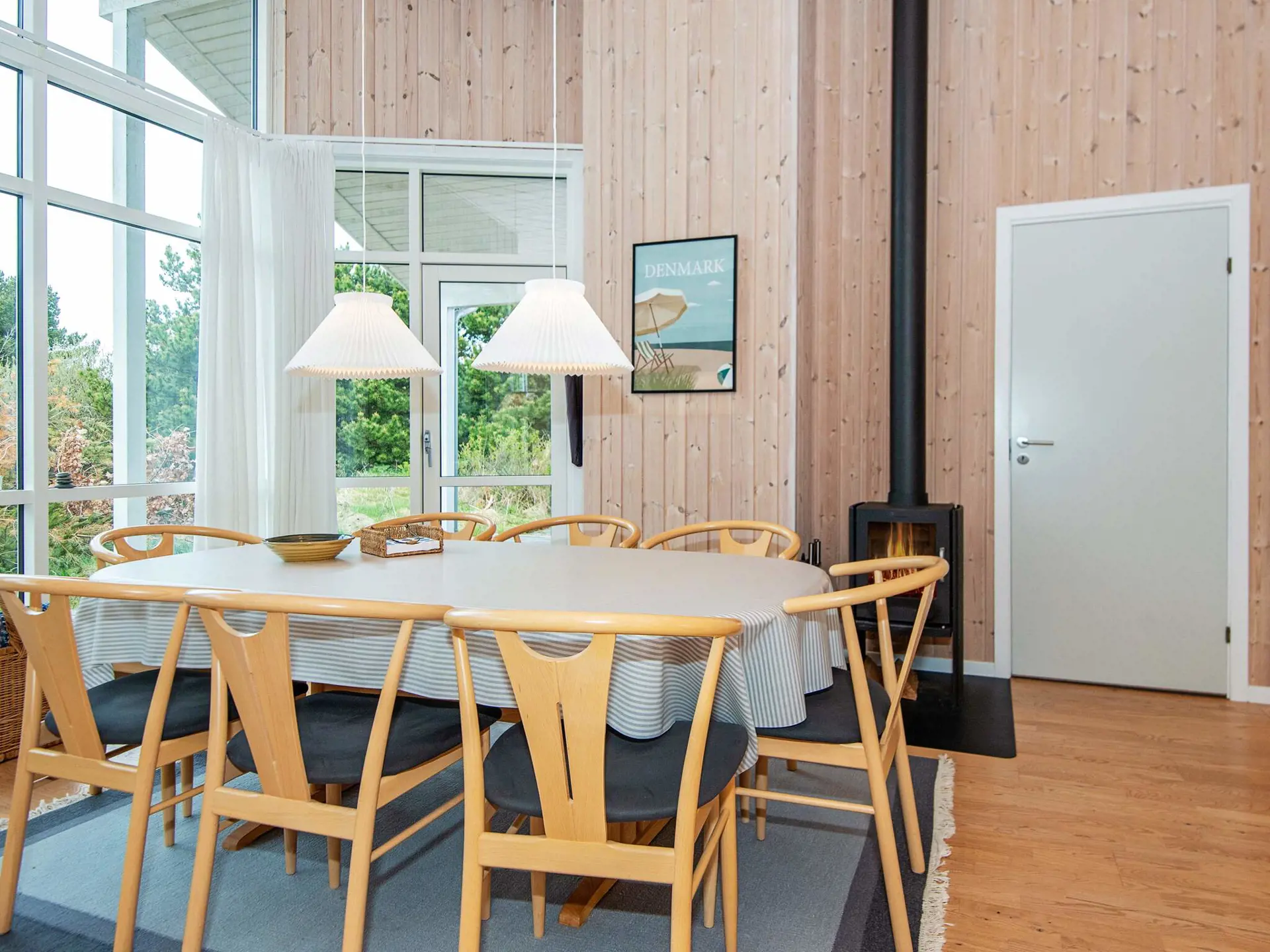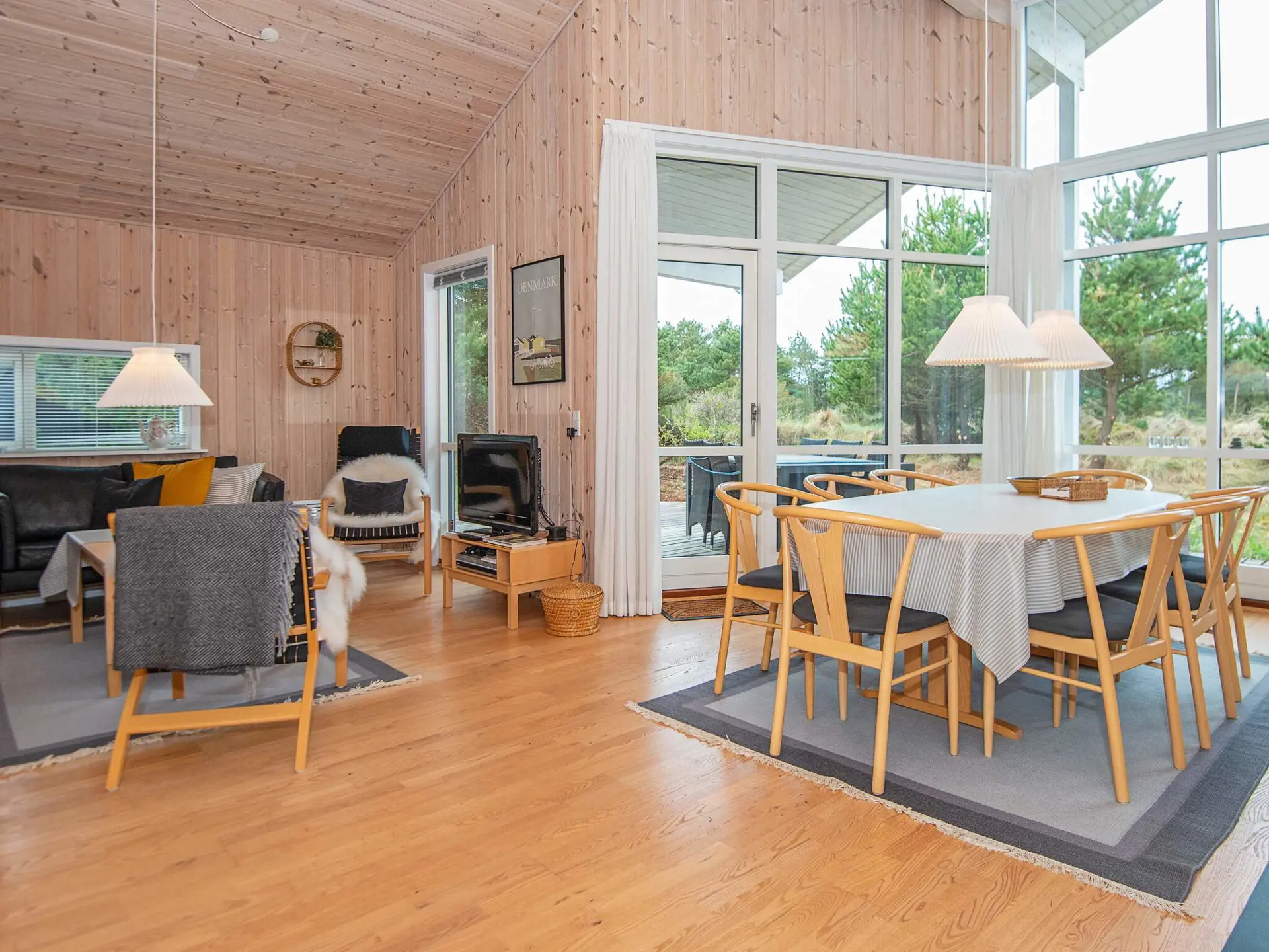 Gut instand gehaltenes Ferienhaus auf einem Dünengrundstück bei Fjand, mit Whirlpool im Bad und einem schönen Ausblick in die umliegende Naturlandschaft, sowohl von der Terrasse als auch vom Wohnbereich aus. Das Haus liegt auf einem von Bäumen umgebenen Naturgrundstück.