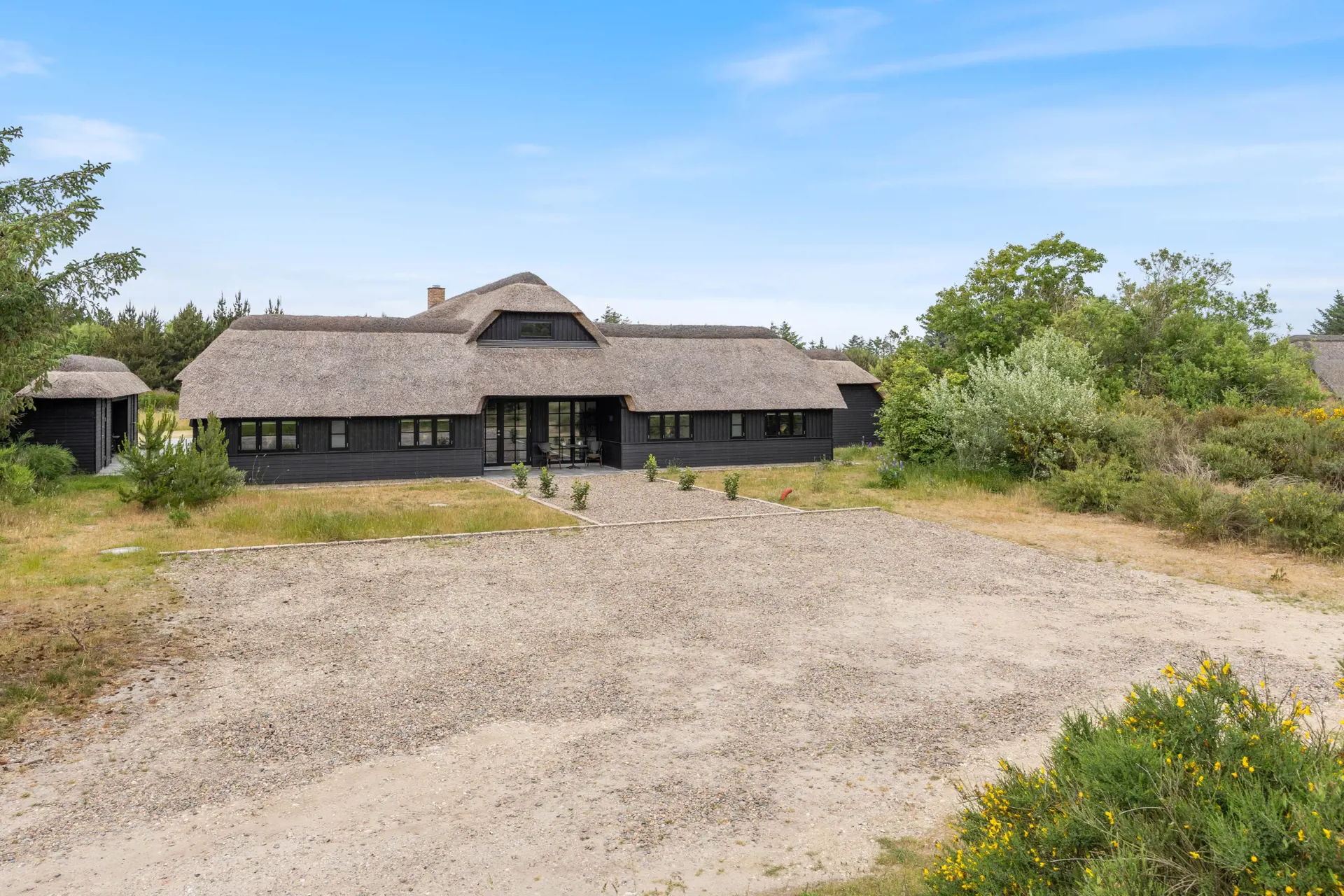 Auch im Außenbereich geht es beeindruckend weiter. Auf den 7100 m2 großem Grundstück lädt euch die wunderschöne, großzügige Terrasse zum Verweilen ein. Leckere Grillabende und jede Menge Spaß im sehr großem Whirlpool Bereich lassen diesen Urlaub unvergesslich werden. Gut geschützt und urgemütlich, ist das wohltuende Sonnenbad auch bei etwas mehr Wind vom Meer möglich und der überdachte Bereich lässt auch ein Verweilen beim Regen zu. Die Außendusche, die von April-November genutzt werden kann, bietet euch die Möglichkeit, nach einem langen Strandspaziergang sich den Sand von den Füßen zu spülen.