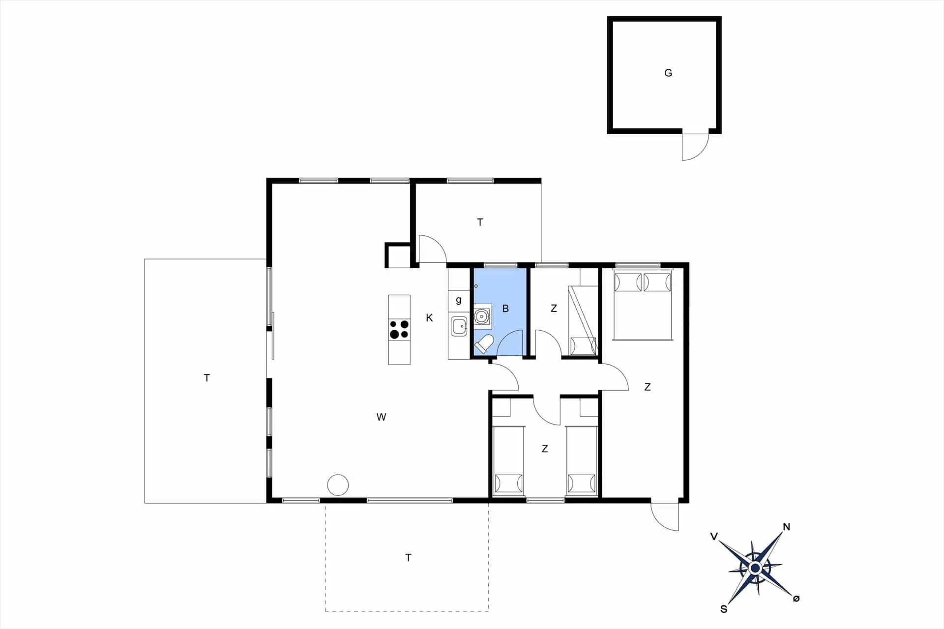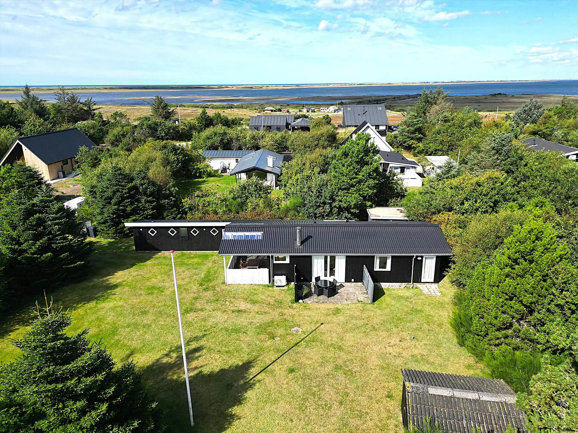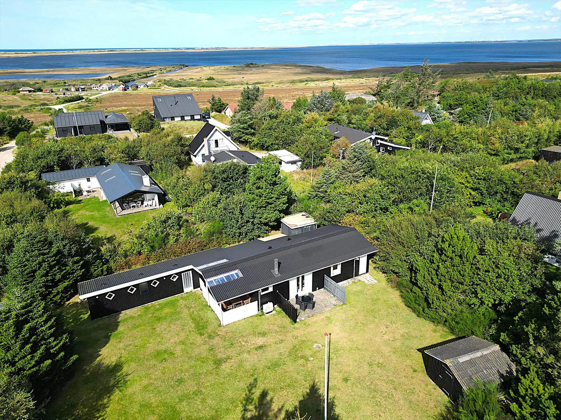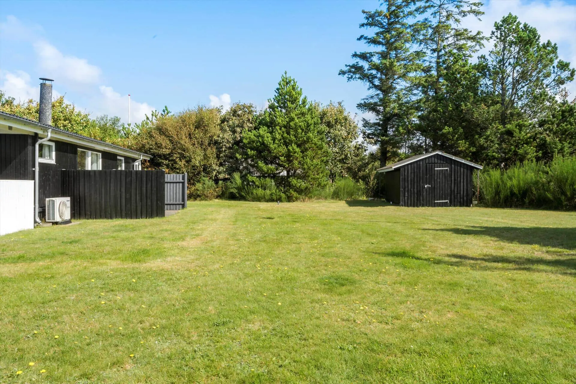 Treten Sie hinaus auf das große und schöne Grundstück, das das Haus umgibt. Hier können Sie in Ruhe vor den Nachbarn sein und trotzdem das Gefühl einer fantastischen Gegend spüren, in der Sie sich befinden. Auf dem Rasen können Sie die Sonnenstrahlen bei einem Fußballspiel genießen oder ein Fangspiel für die ganze Familie, oder Sie können sich ins Gras werfen und den wunderschönen Wolken beim Tanzen am Himmel zusehen. Wenn Sie müde sind und eine wohlverdiente Ruhe brauchen, können Sie je nach Sonnenstand auf einer der Terrassen sitzen und die Wärme genießen, und wenn Sie im Schatten oder geschützt vor dem Regen sitzen möchten, ist das auch eine gute Wahl Option auf der überdachten Terrasse, also nehmen Sie Ihr Abendessen draußen ein und genießen Sie das schöne dänische Sommerwetter von allen Seiten.