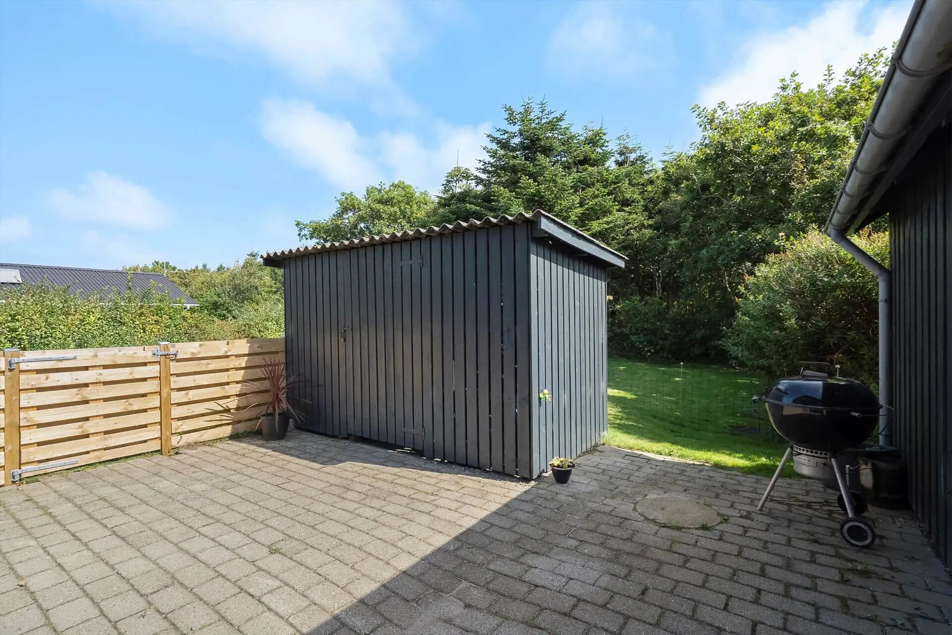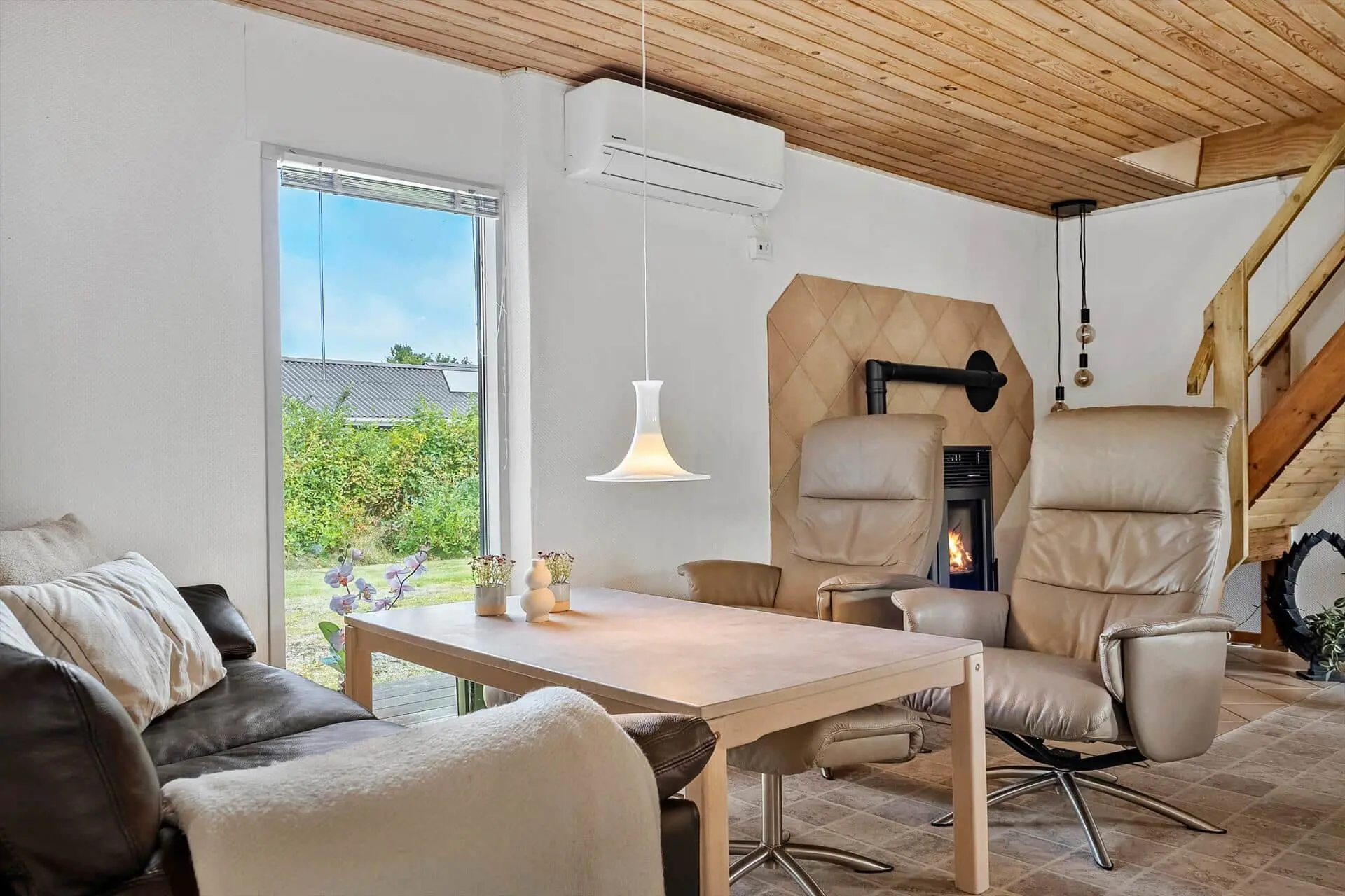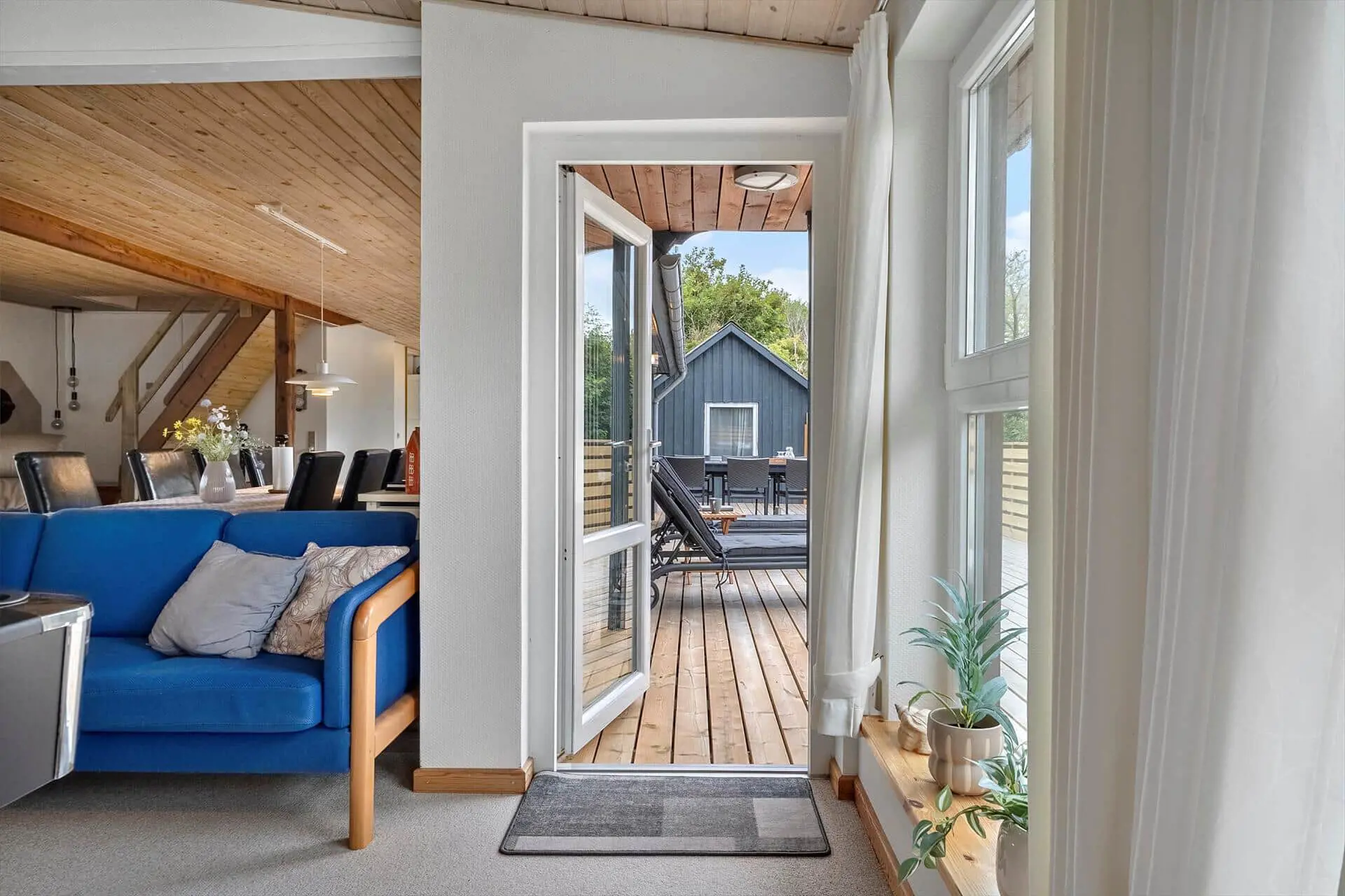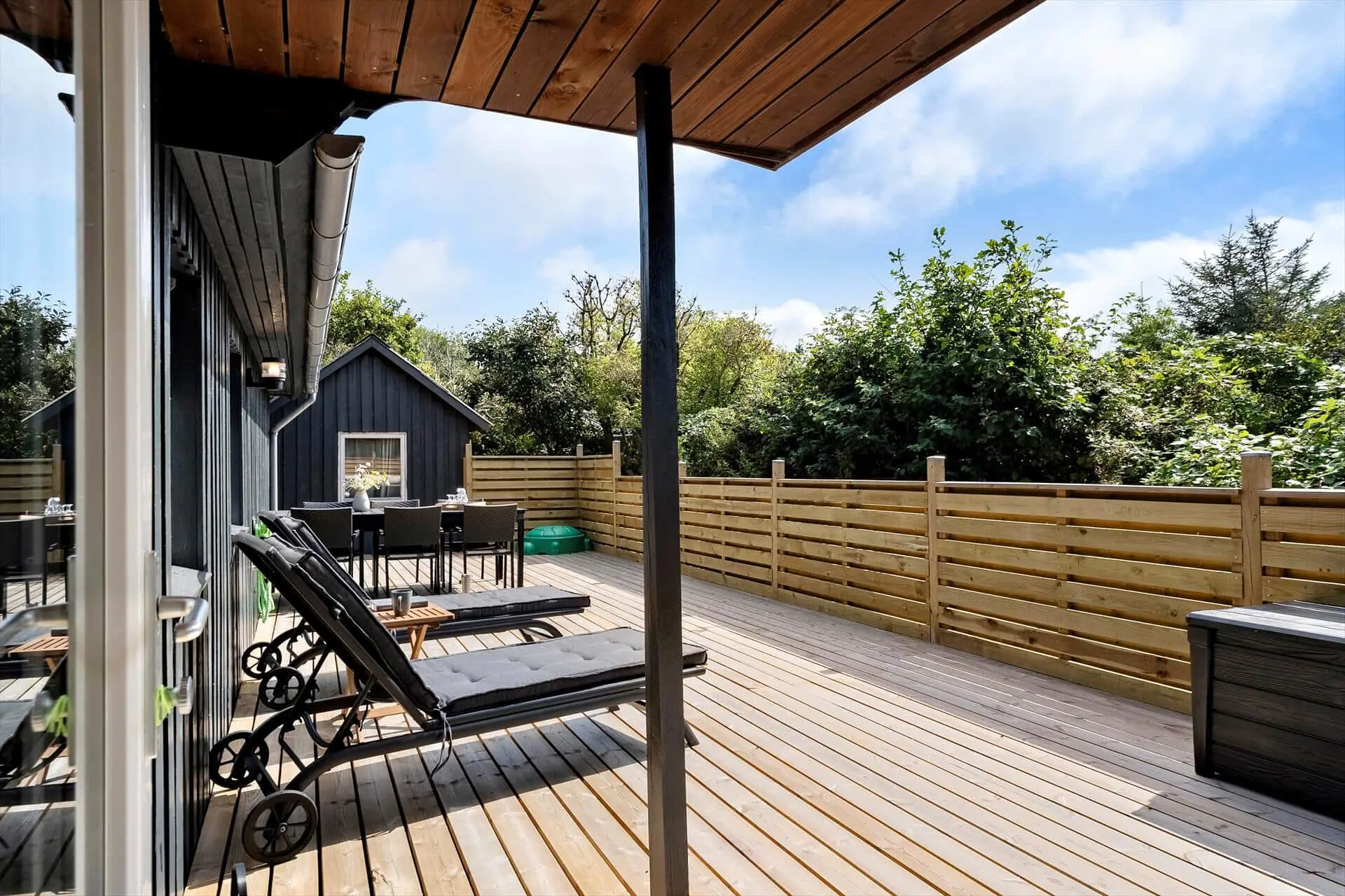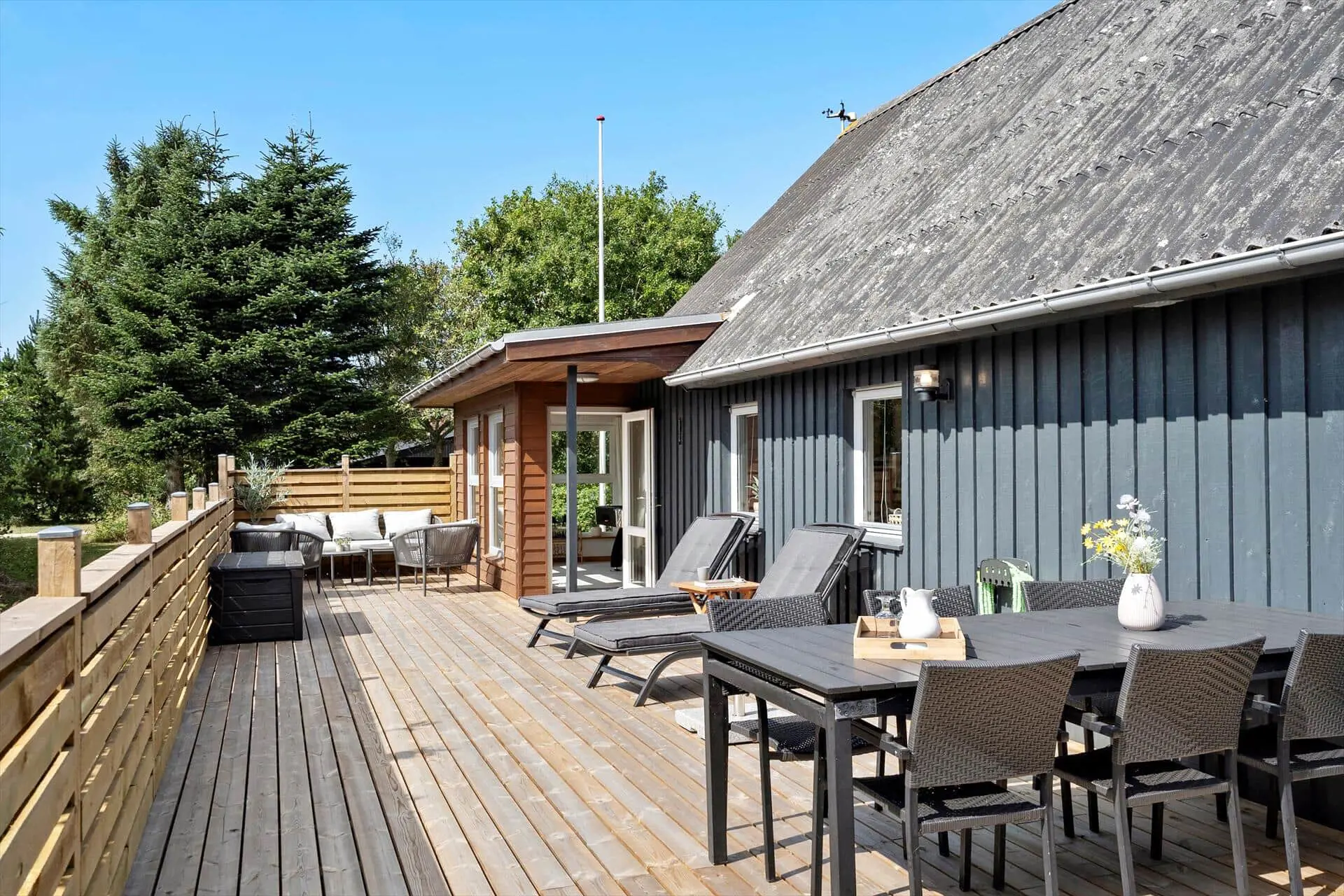 Vom Wohnzimmer aus treten Sie direkt auf die große Holzterrasse hinaus, die den ganzen Tag Sonne bietet. Beginnen Sie den Morgen mit einer frisch gebrühten Tasse Kaffee, genießen Sie ein entspanntes Mittagessen im Freien oder versammeln Sie die Familie am Abend zu einem Grillabend, während Sie die Erlebnisse des Tages Revue passieren lassen. Die Lage lädt dazu ein, vollkommen abzuschalten – und ganz in der Nähe finden Sie sowohl den Fjord als auch die Nordsee, wo Sie lange Spaziergänge am Wasser unternehmen, den Wind im Haar spüren und das einzigartige Licht Westjütlands genießen können.